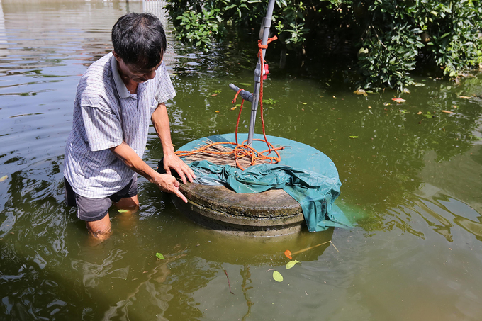 Sợ nước bẩn tràn vào, nhiều người dân phải đậy nắp kín nắp giếng để có nước sạch sử dụng sau khi hết ngập lụt.