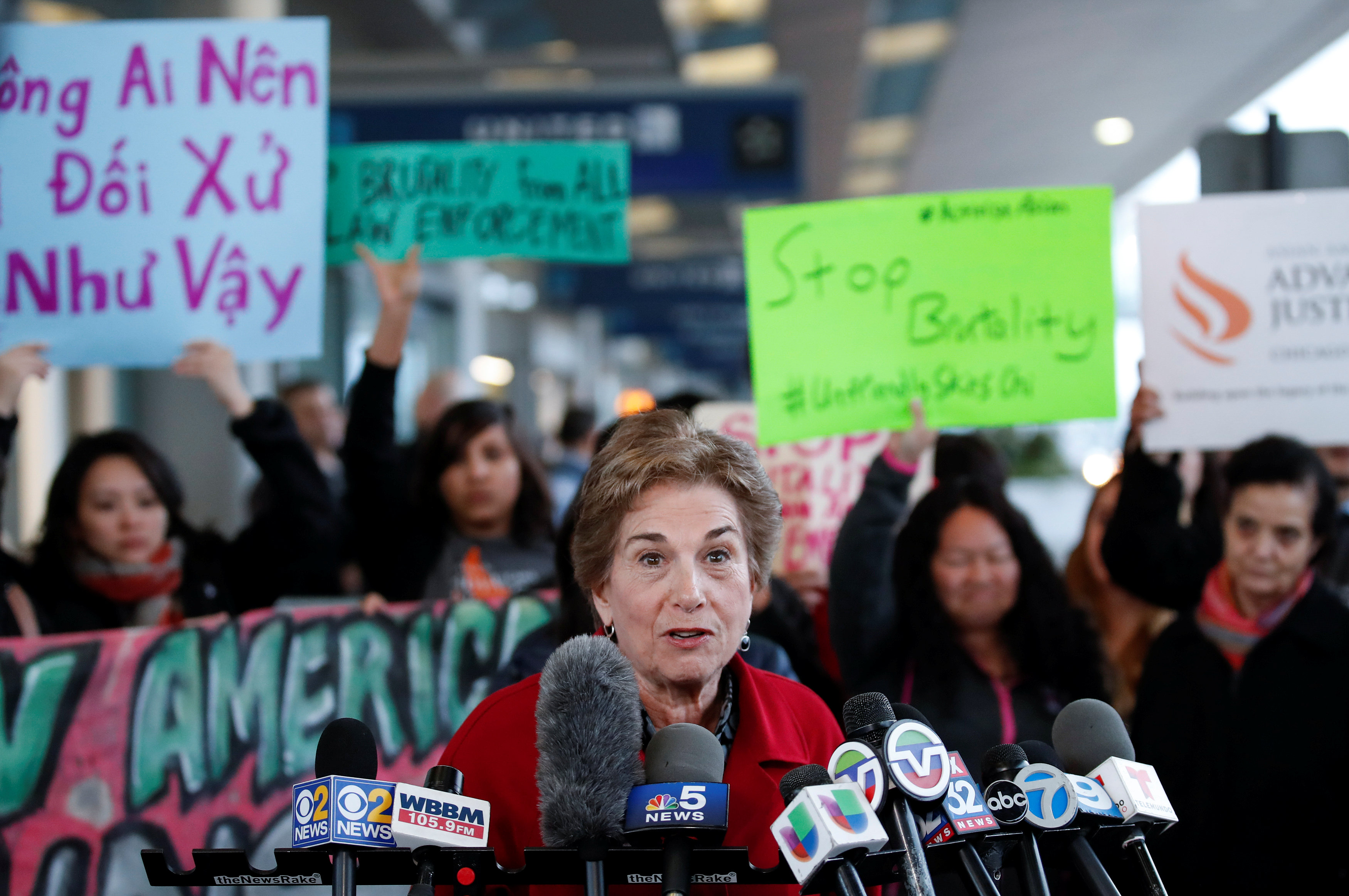 Bà Jan Schakowsky, nghị sĩ bang Illinois, phát biểu tại cuộc biểu tình - Ảnh: Reuters
