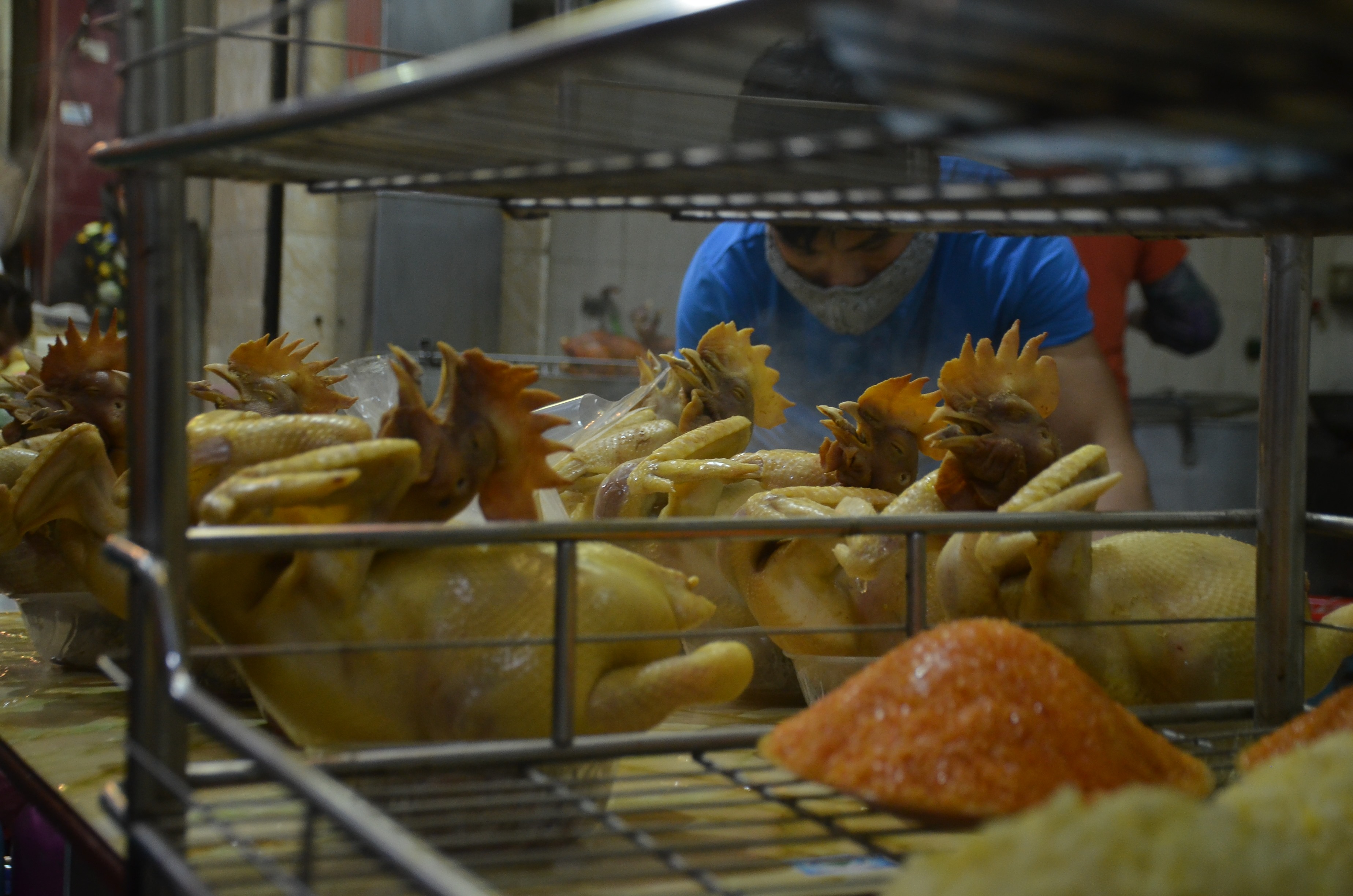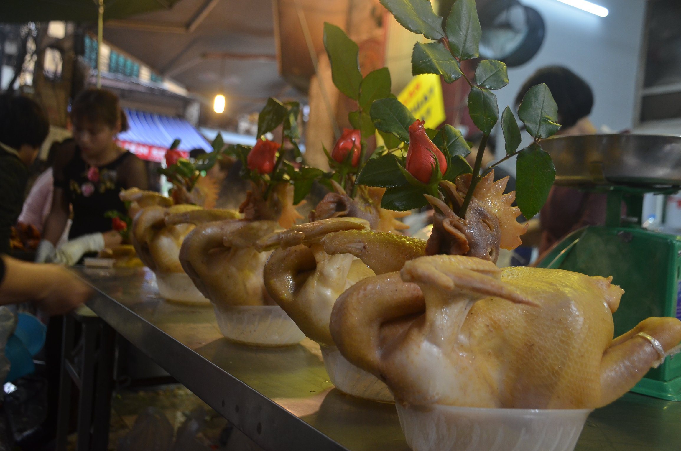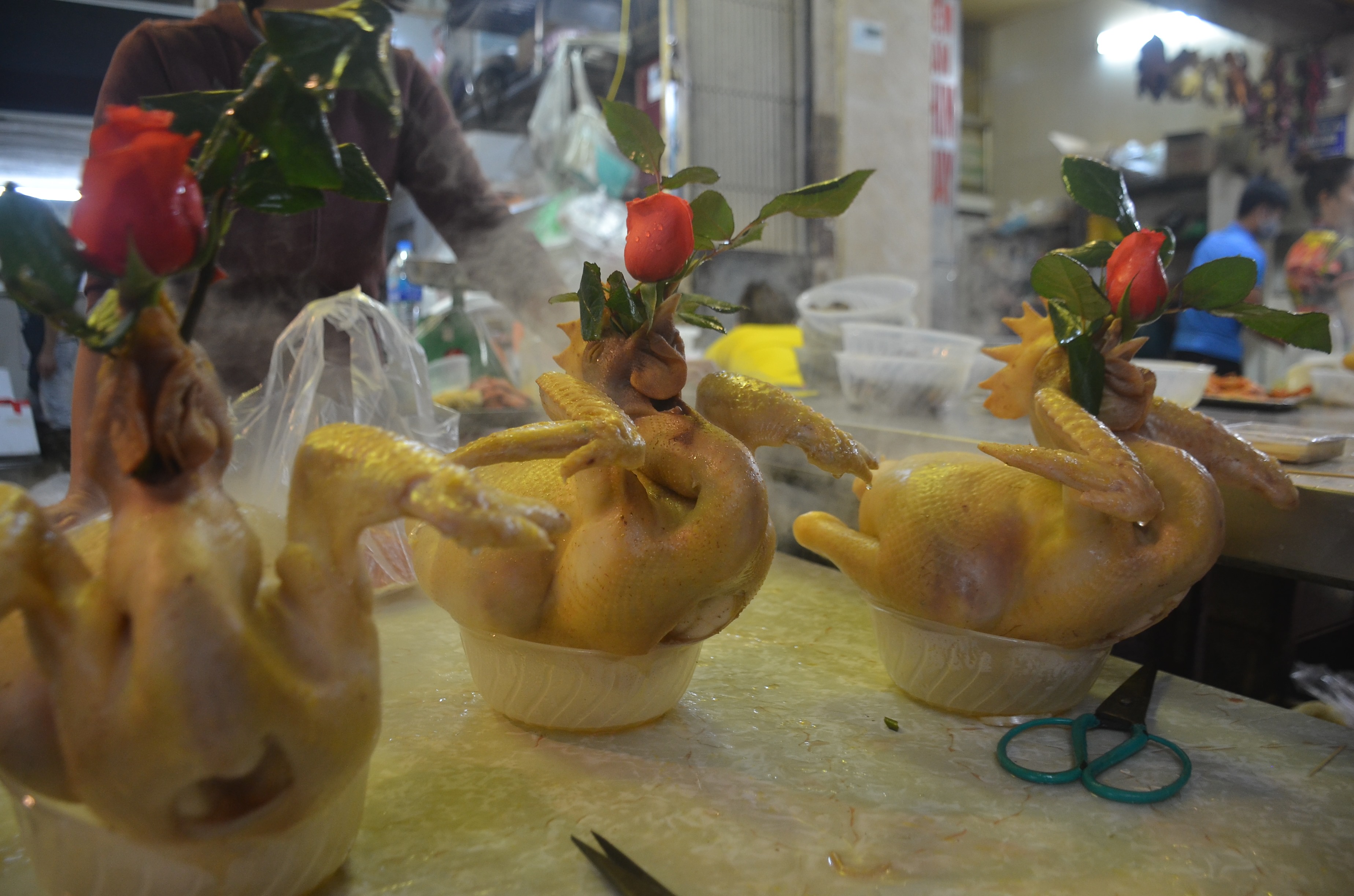 Gà luộc được bày bán phục vụ ngày cúng ông Công ông Táo