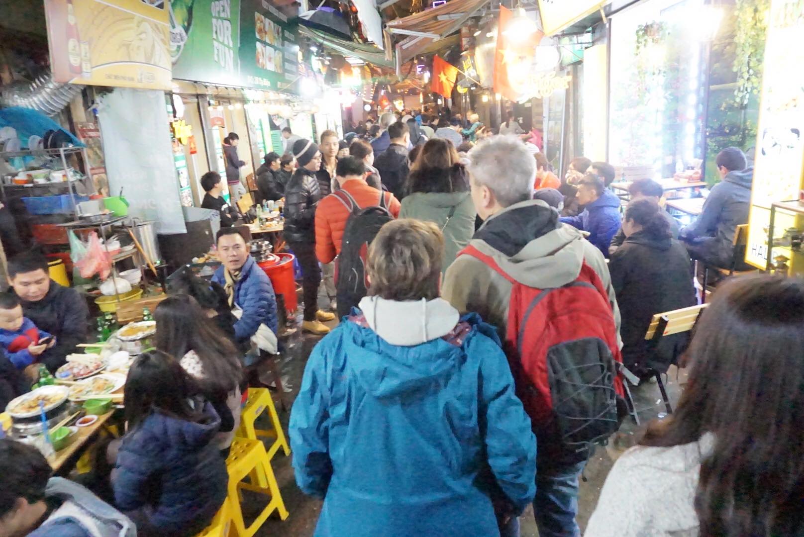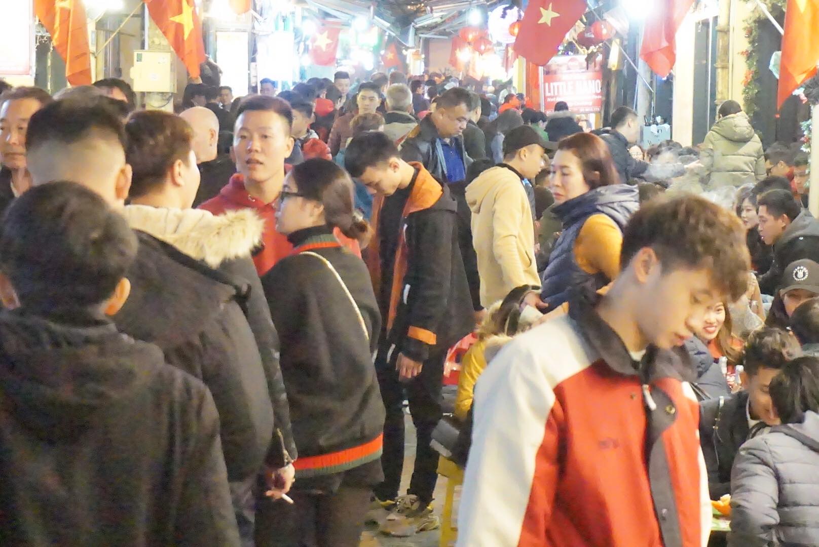 Từ vỉa hè đến lòng đường phố đi bộ đều chật cứng, không còn một khoảng trống.