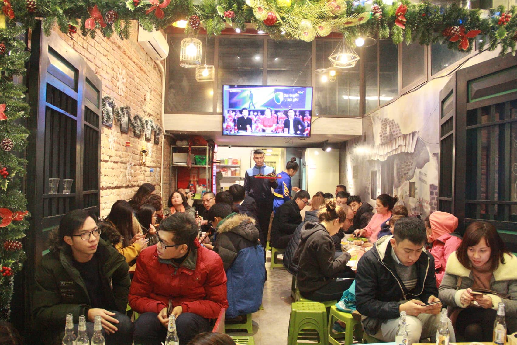 Tai phố Tạ Hiện - một trong những địa điểm người dân thủ đô chọn để vui chơi vào các dịp lễ. Chào năm mới 2019, hàng nghìn người dân thủ đô và khách du lịch đã kéo về các nhà hàng, quán ăn cùng bạn bè vui vẻ những giờ cuối năm.