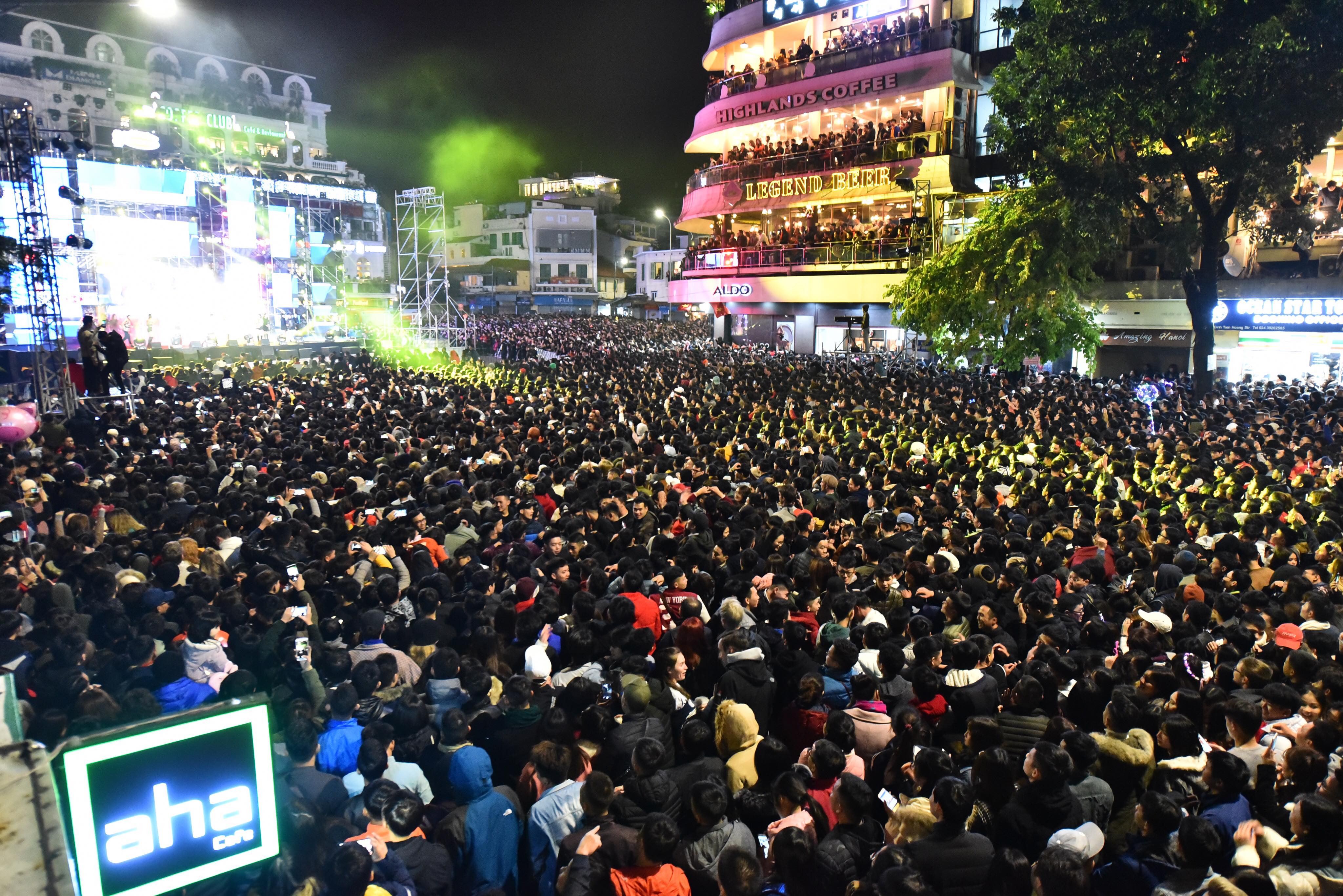 Biển người đổ về ăn uống đón năm mới ở phố đi bộ