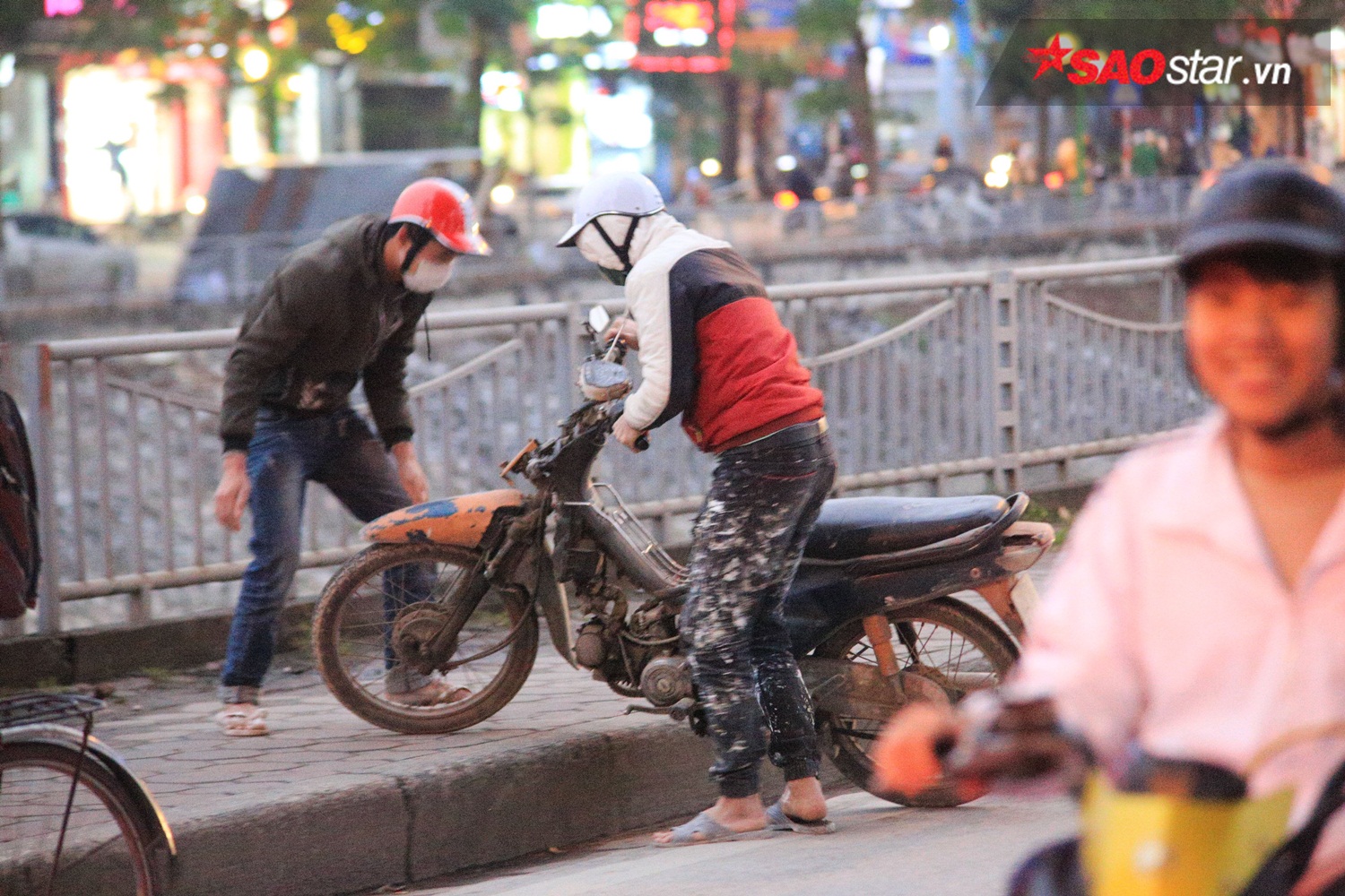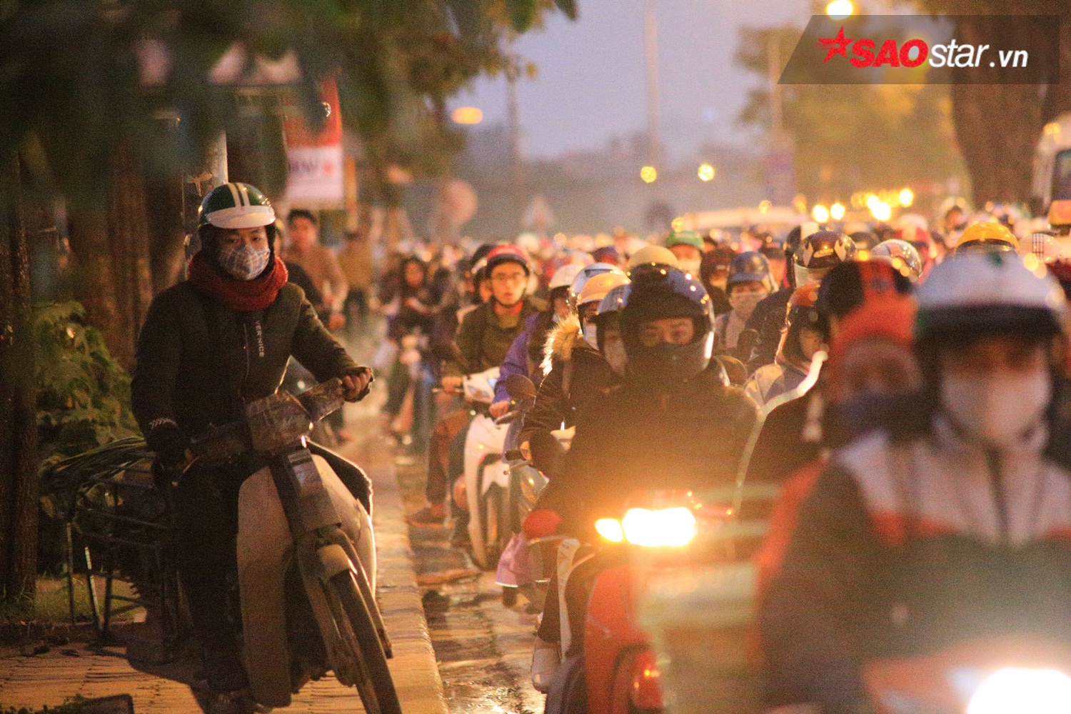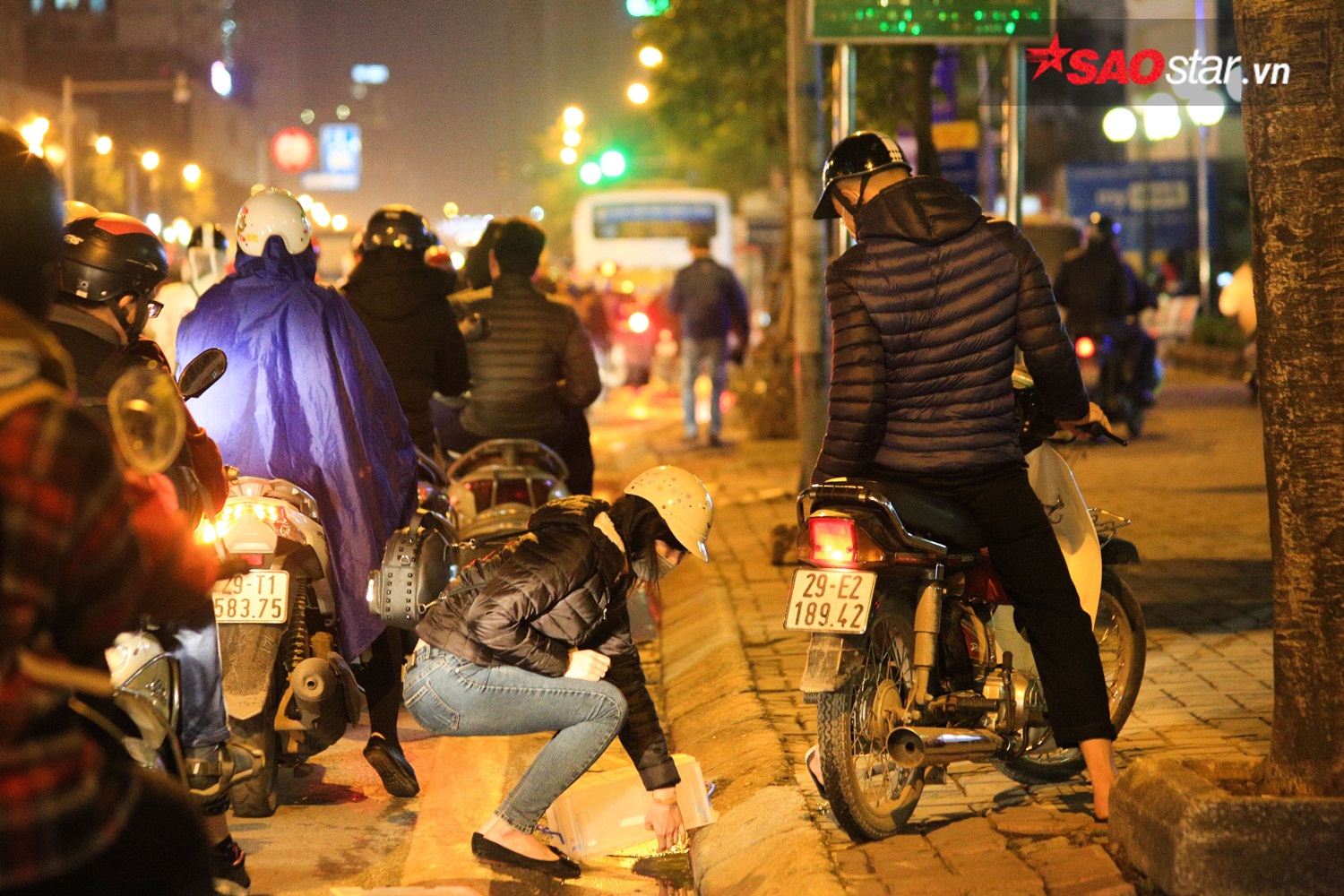 Nhiều người còn tắt máy, đứng “chôn chân” dưới trời lạnh.