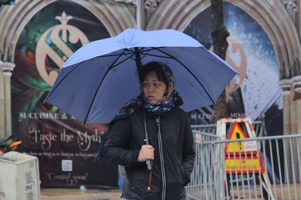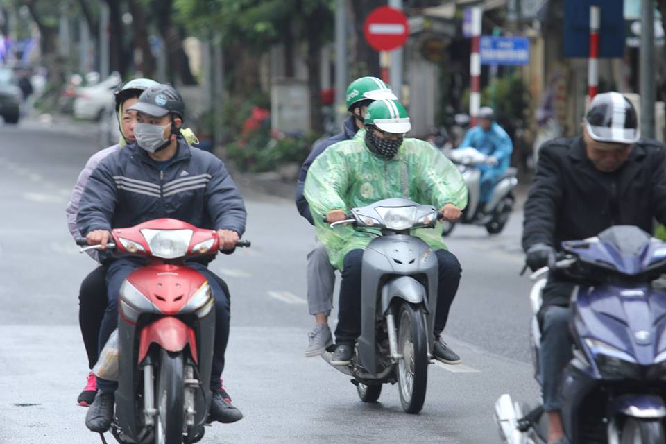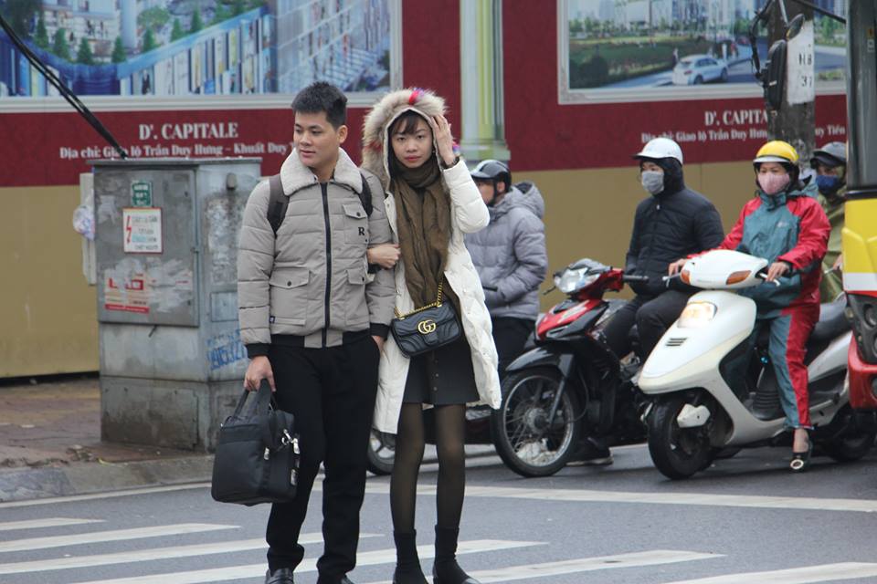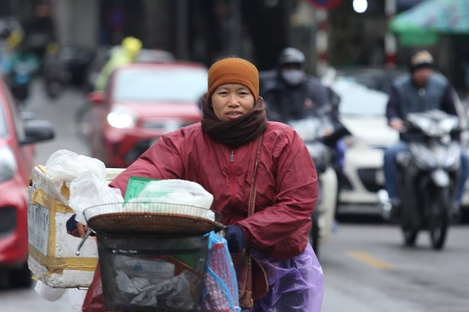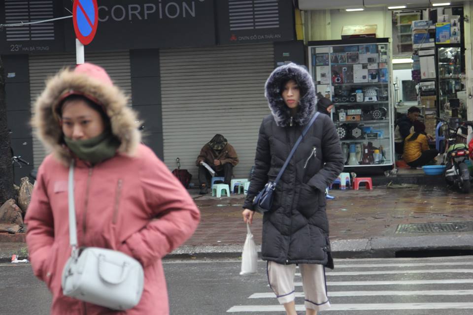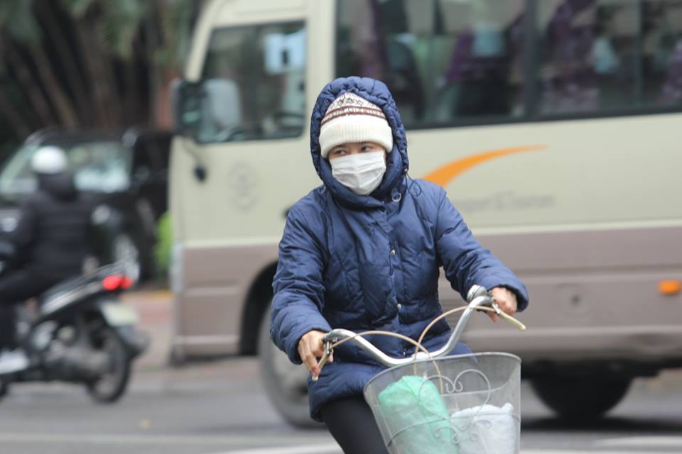 Bên cạnh đó, nhiệt độ xuống thấp, nhiều người dân đã phải mặc nhiều áo ấm, trùm kín người để bớt lạnh mỗi khi ra đường.