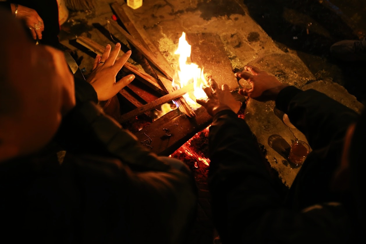 Mọi người túm tụm nhau để truyền hơi ấm.