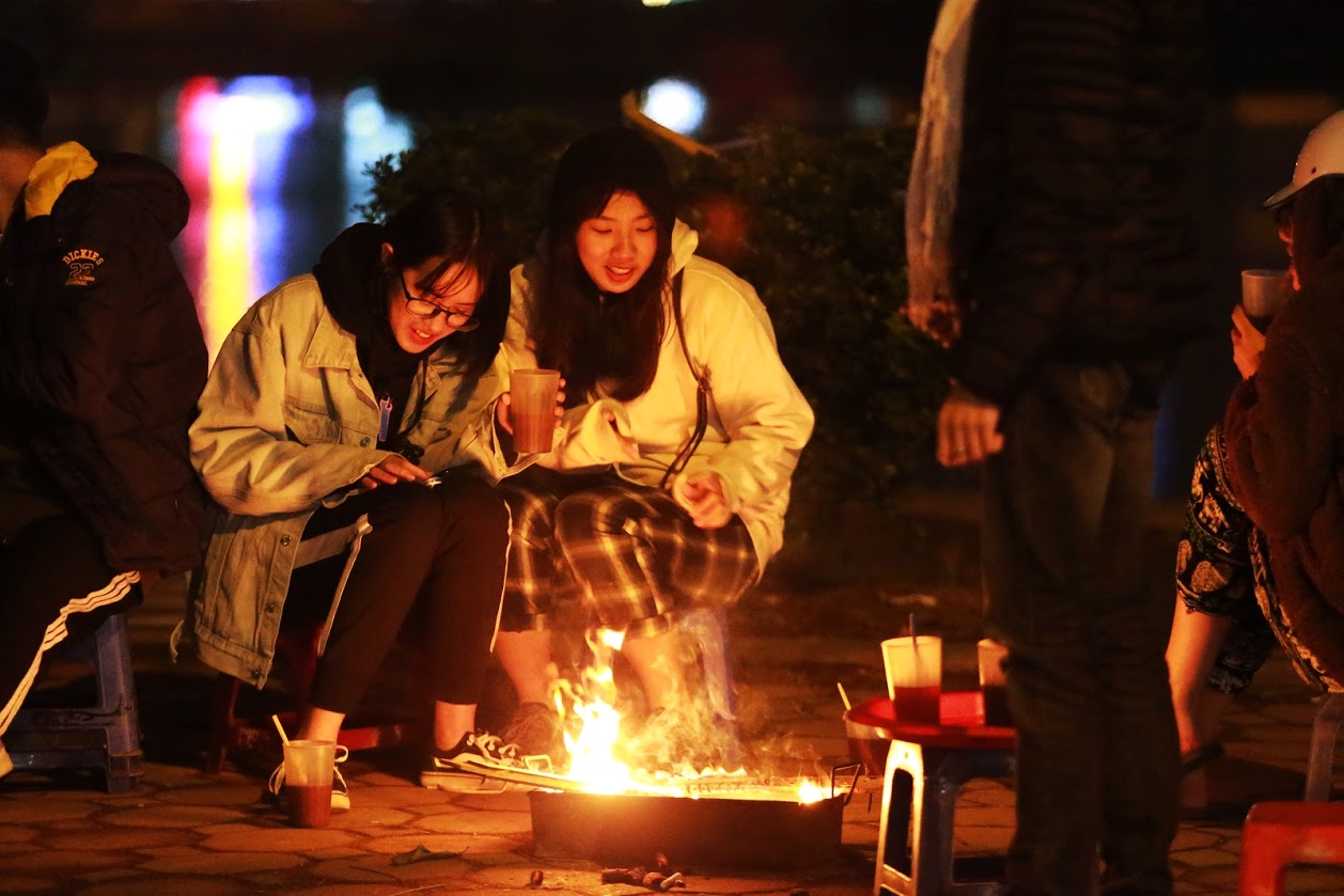 Nhiều bạn trẻ cũng túm tụm trong cái lạnh khắc nghiệt