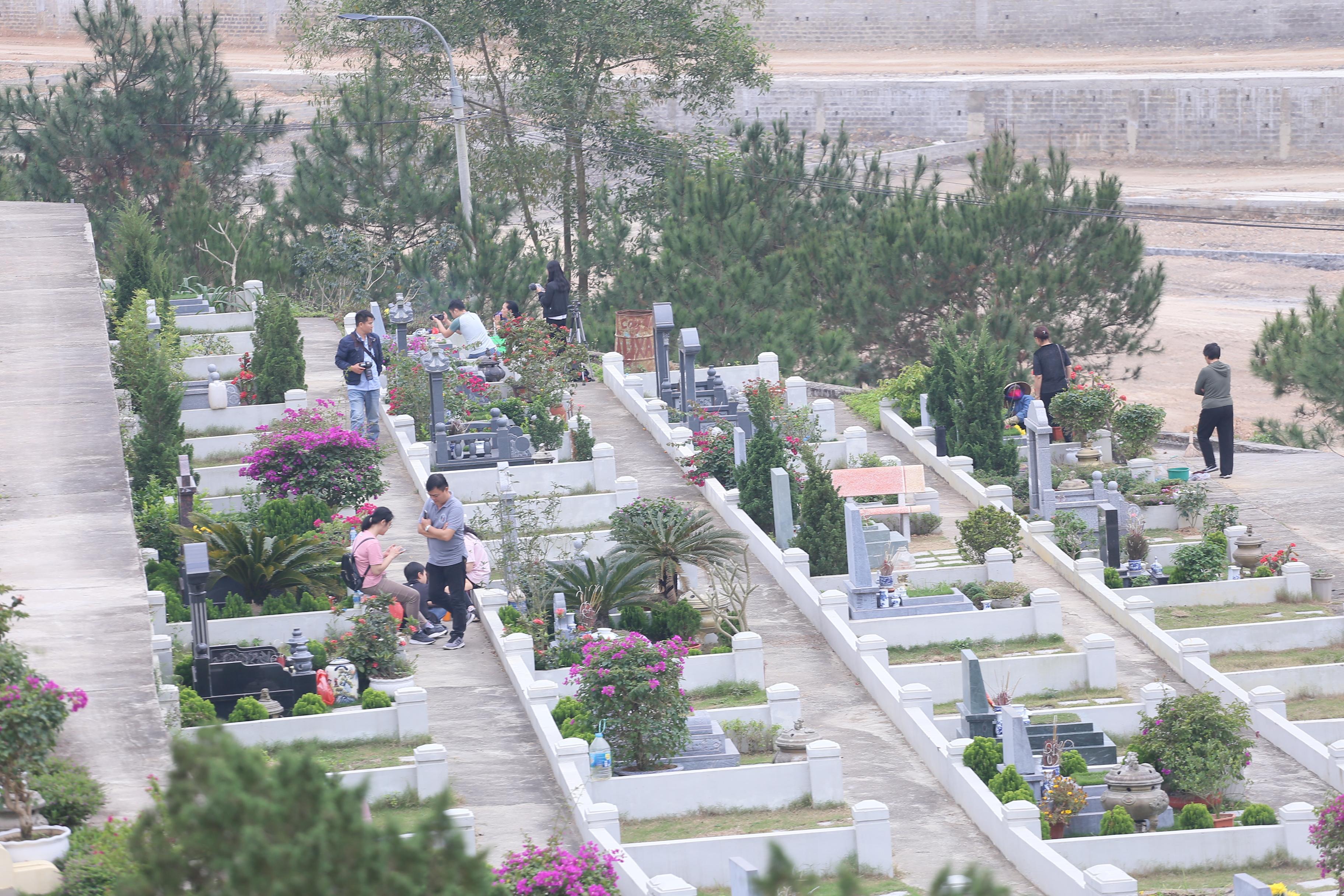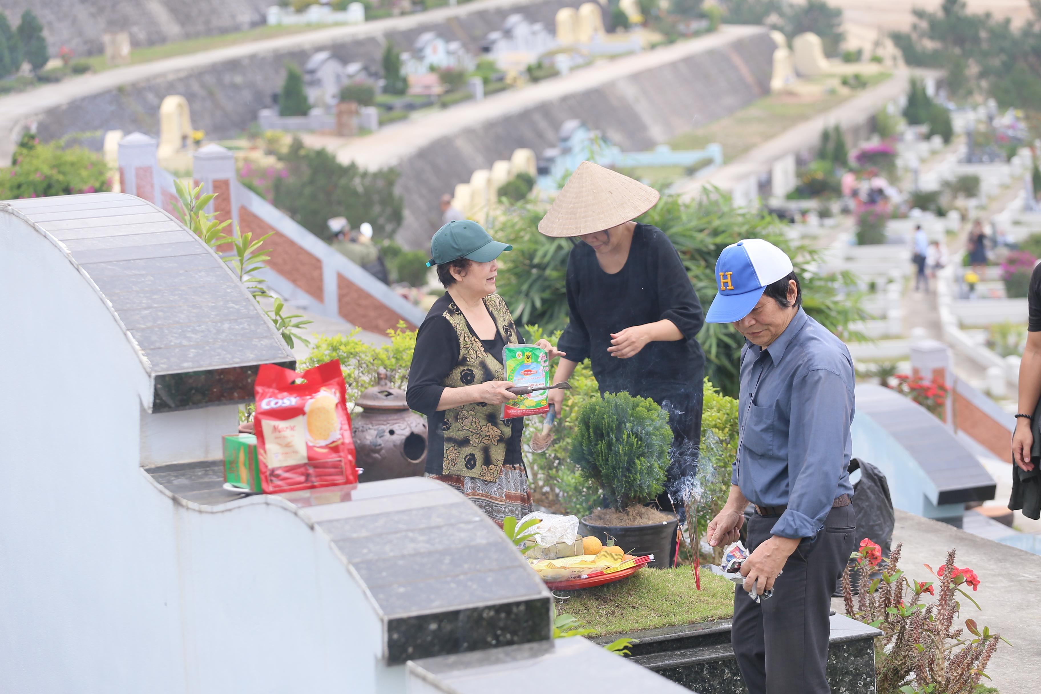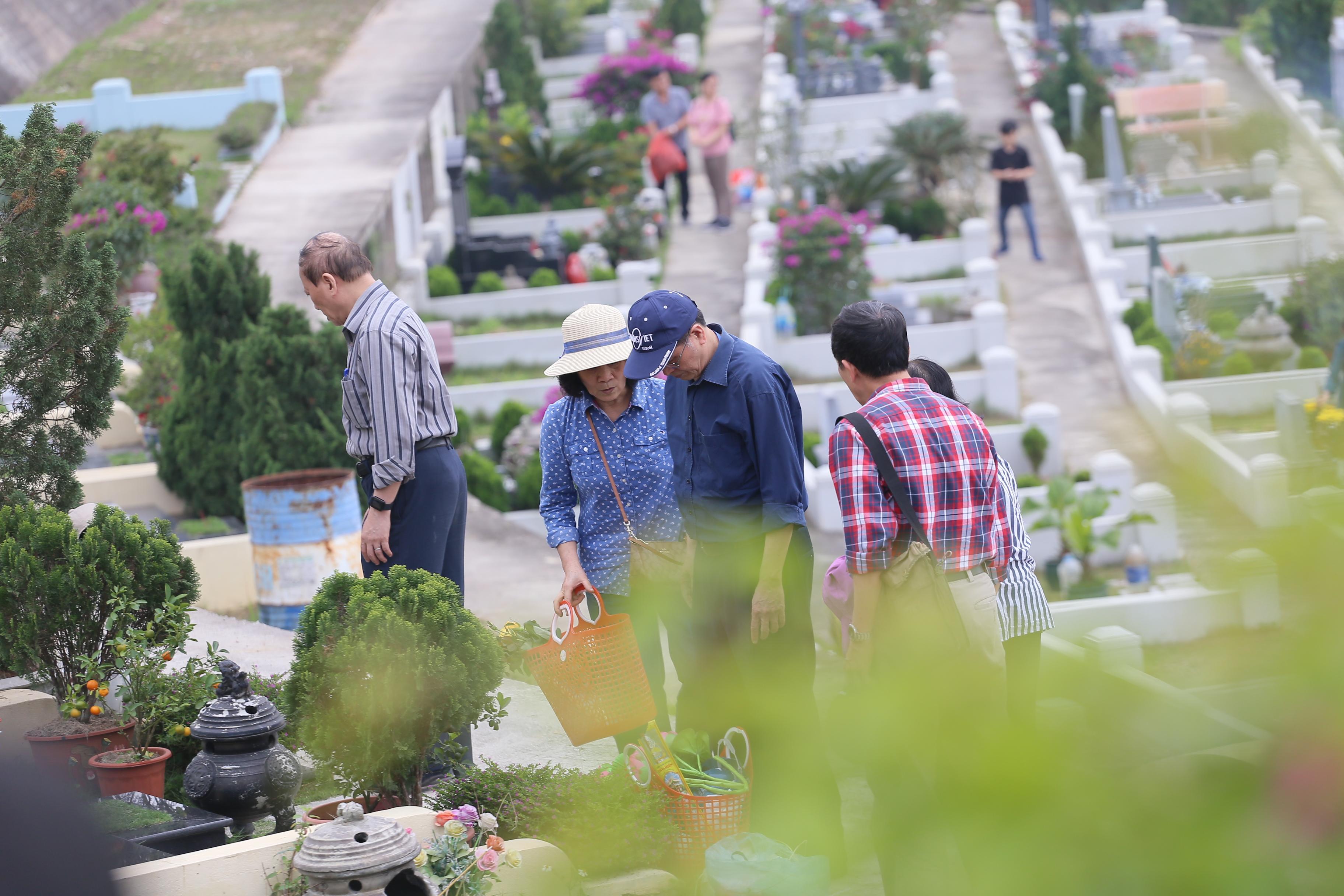 Bà Trần Thị Nhung (70 tuổi, ở Hà Nội - thứ 2 từ phải sang) cho biết, bà cùng bốn chị em trong gia đình hàng năm đều sắp xếp thời gian sau rằm tháng chạp lên thăm mẹ được an táng tại Hòa Bình. Bà Nhung chia sẻ, cụ thân sinh ra bà đã an nghỉ tại công viên nghĩa trang Lạc Hồng Viên được 5 năm. Hàng năm, vào các dịp Tết Thanh minh, Tảo mộ, lễ Vu Lan báo hiếu… gia đình anh chị em dâu rể đều tổ chức cùng con cháu lên thăm cụ.