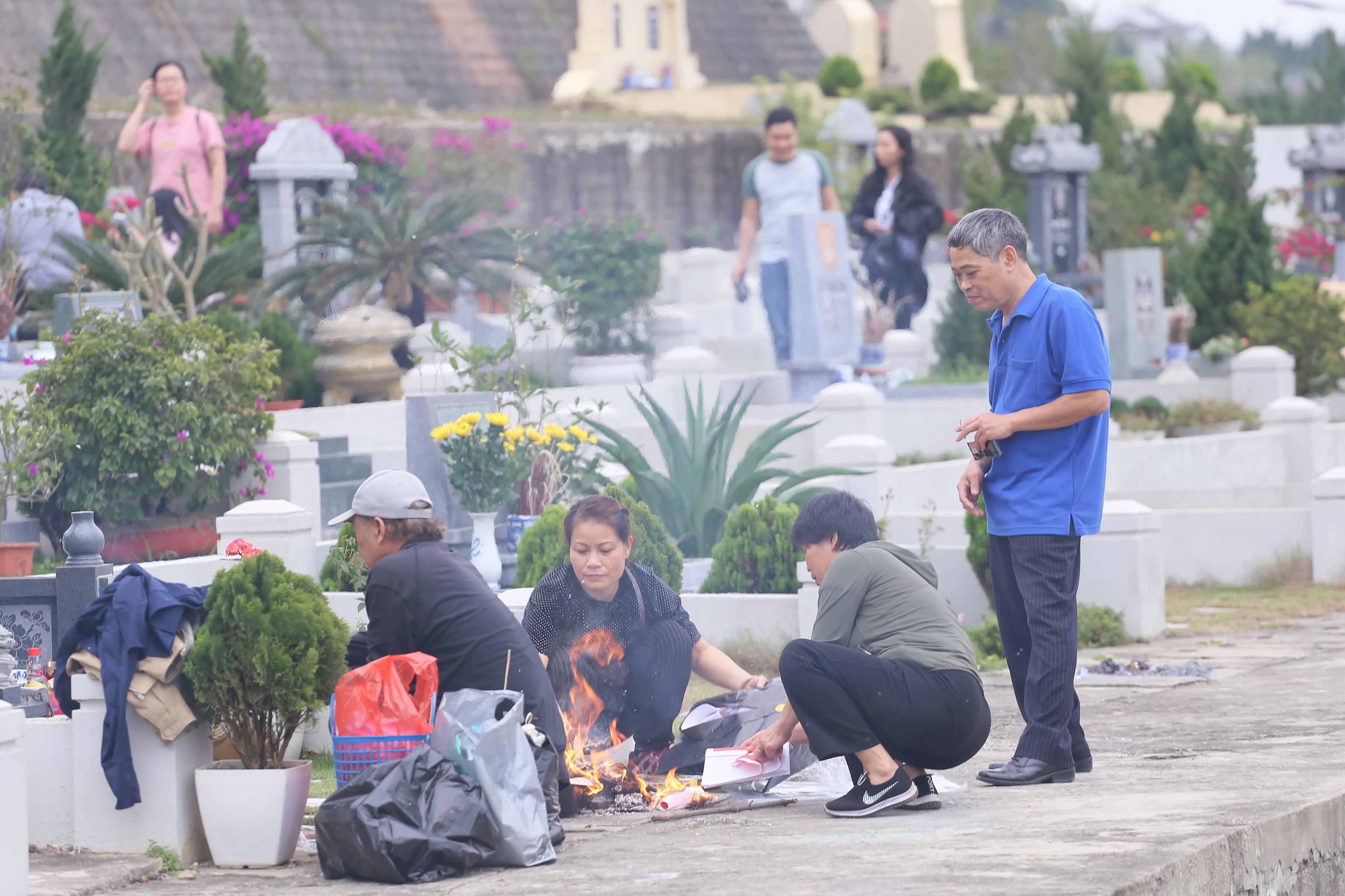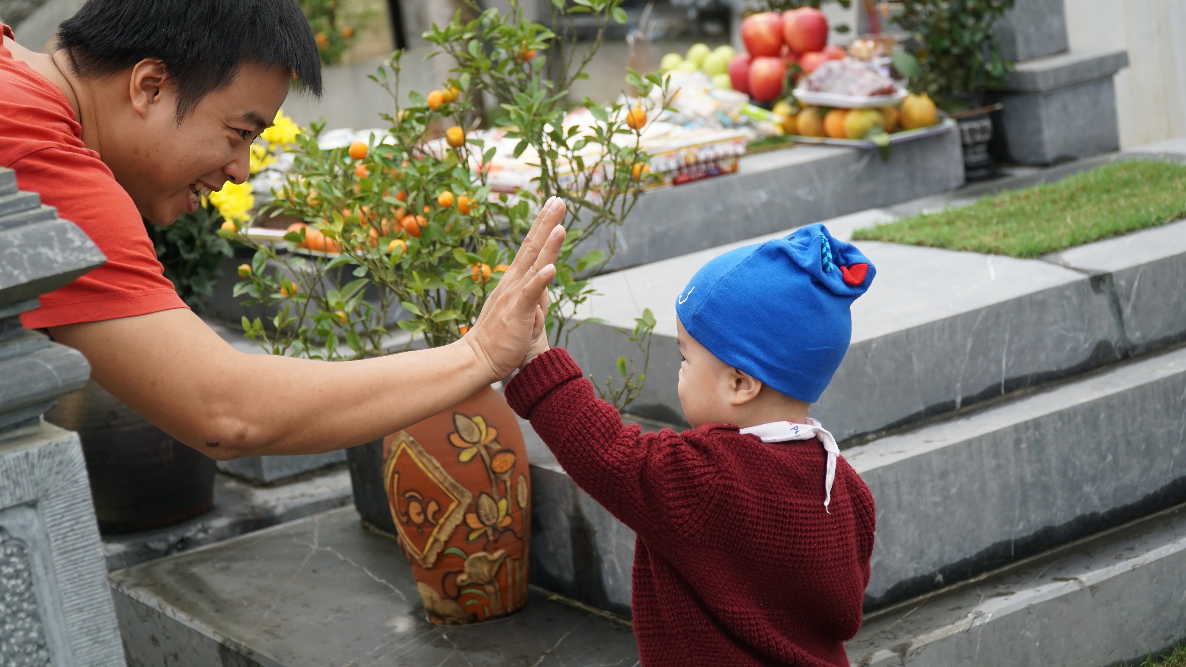 Nhiều gia đình đưa con nhỏ đến mộ vái vọng, cầu bình an, sức khoẻ… Đó cũng là cách để con cháu biết về tổ tiên, những thế hệ cha ông đã khuất.