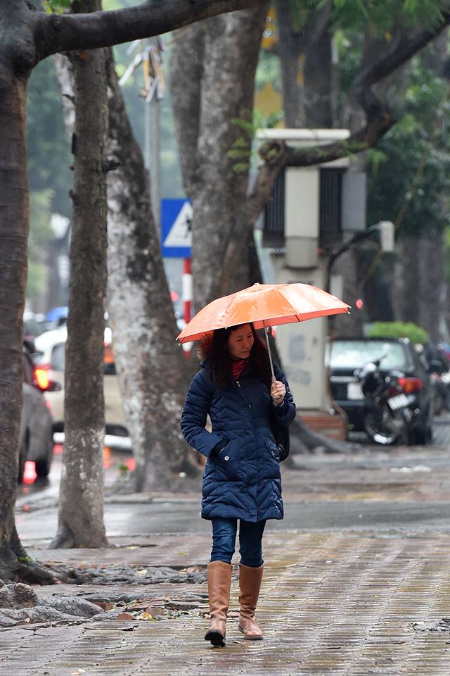 Sáng nay, không khí lạnh tăng cường khiến Thủ đô chìm trong mưa rét.