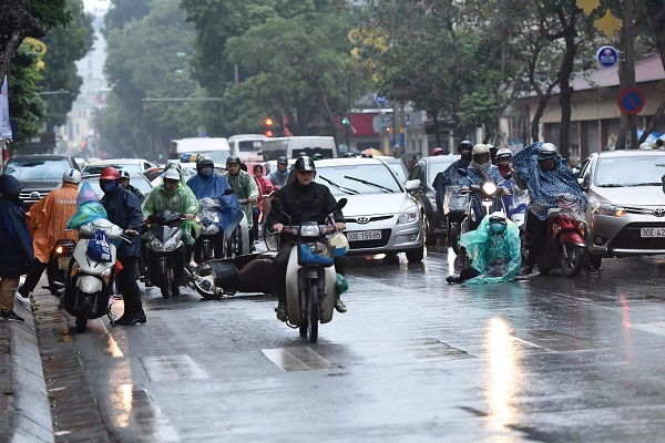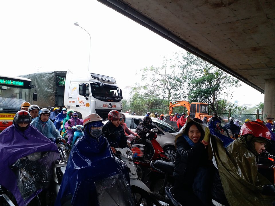 Mưa rét cũng khiến giao thông tại nhiều tuyến đường bị ùn tắc cục bộ.
