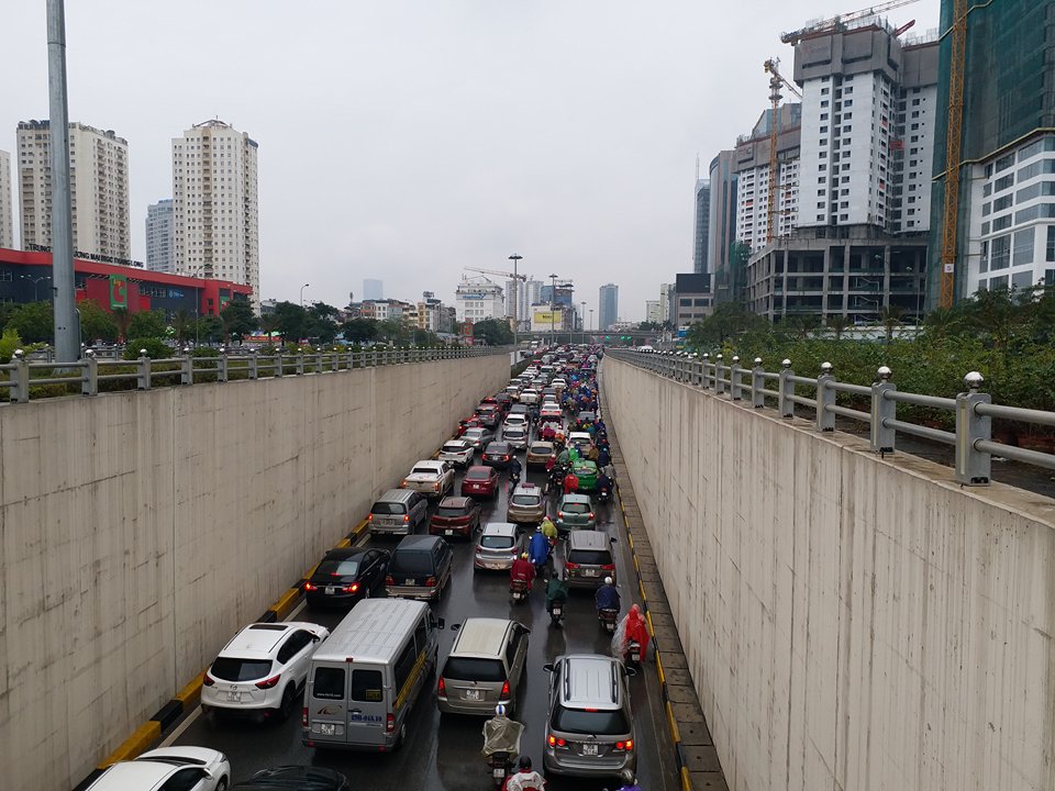 Khung cảnh sáng nay ở hầm cầu vượt Trần Duy Hưng.