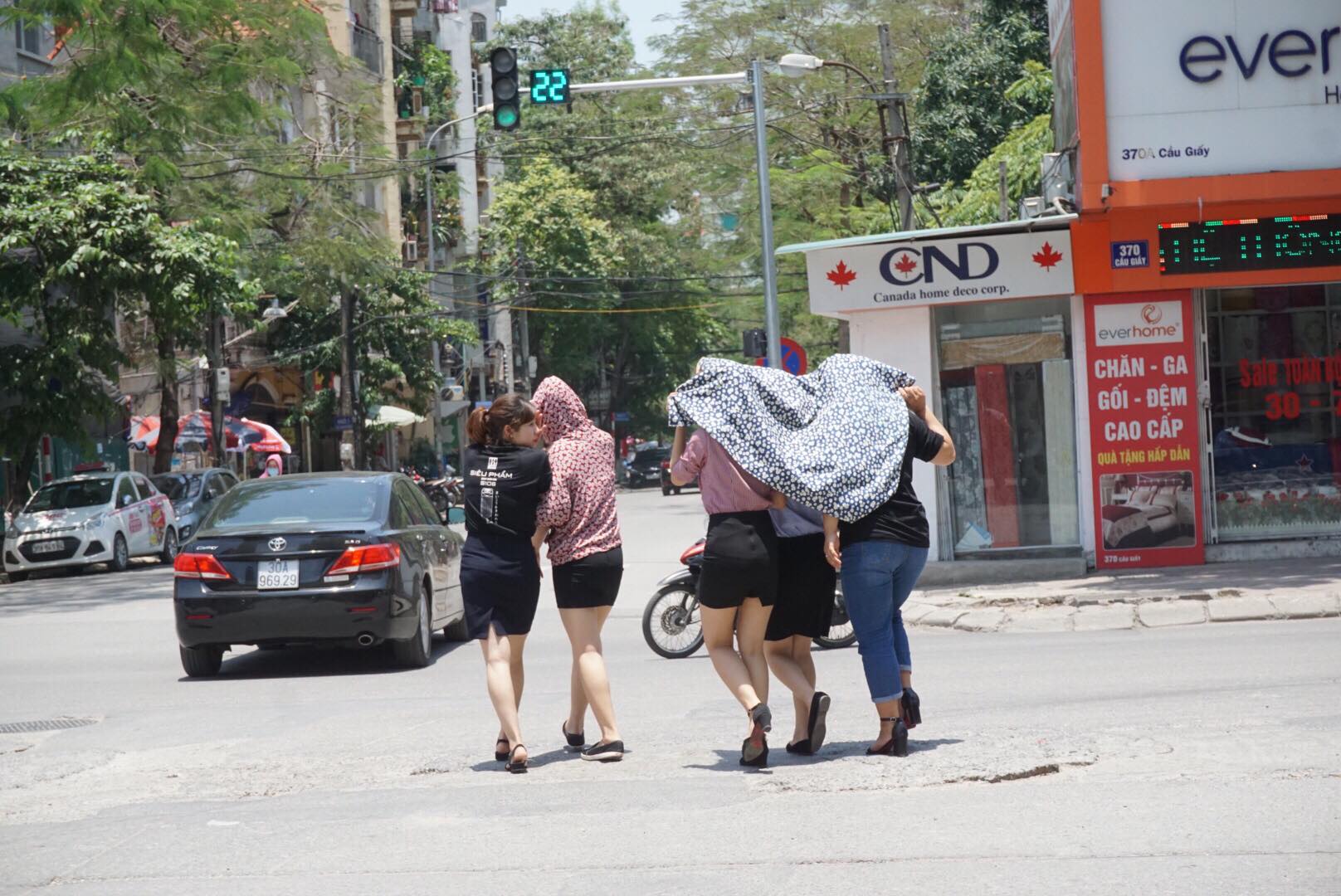 Cảnh dòng người dưới cái nắng trên đường Cầu Giấy.
