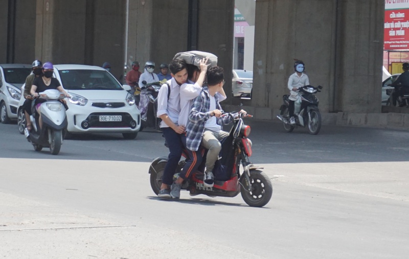Nhiều học sinh vật vã trong cái nắng giữa tháng 5.