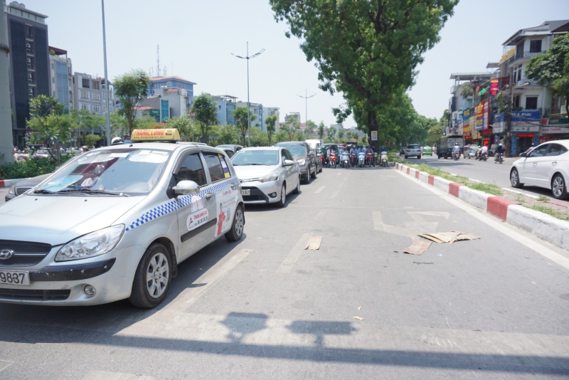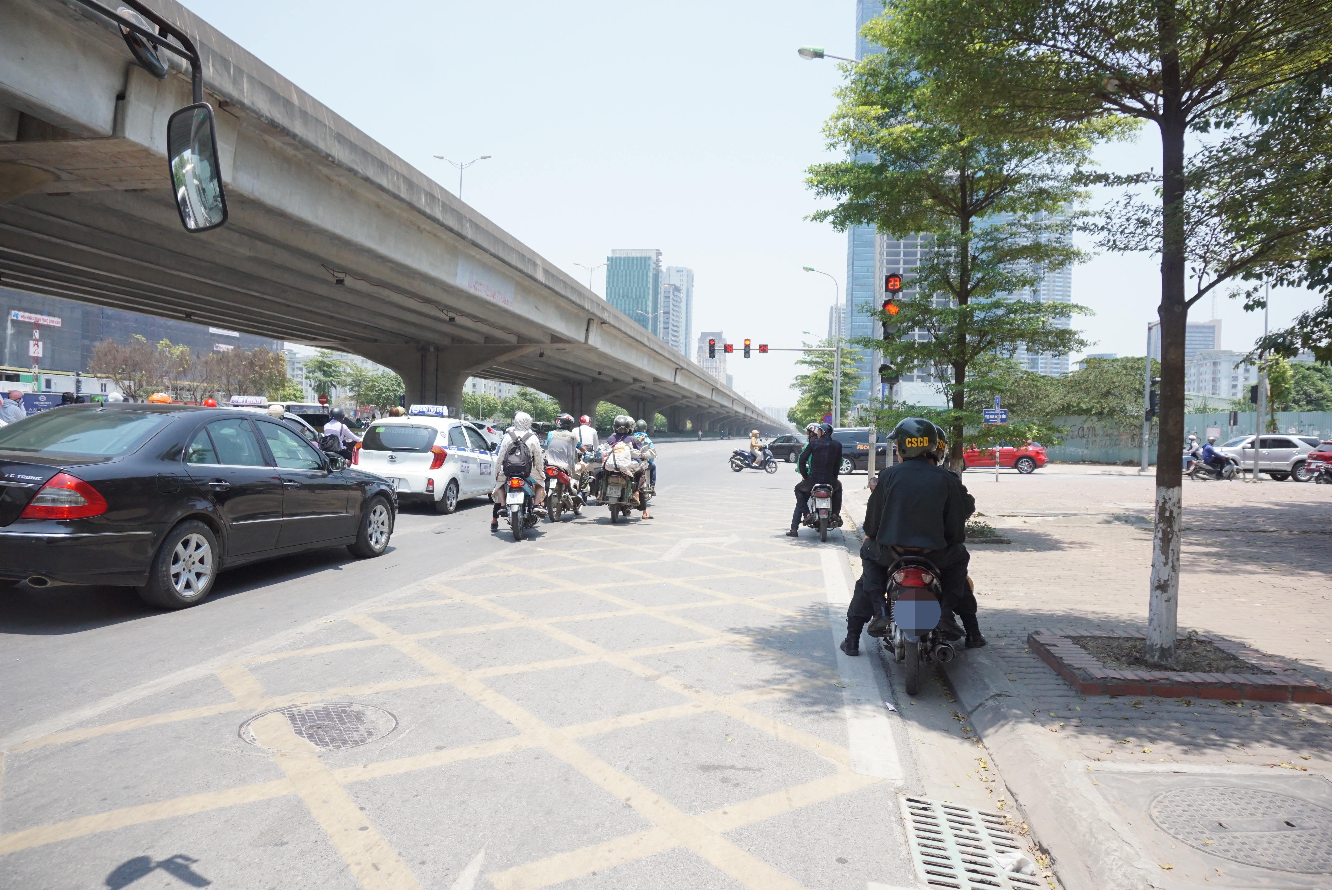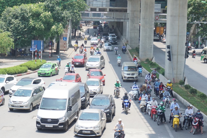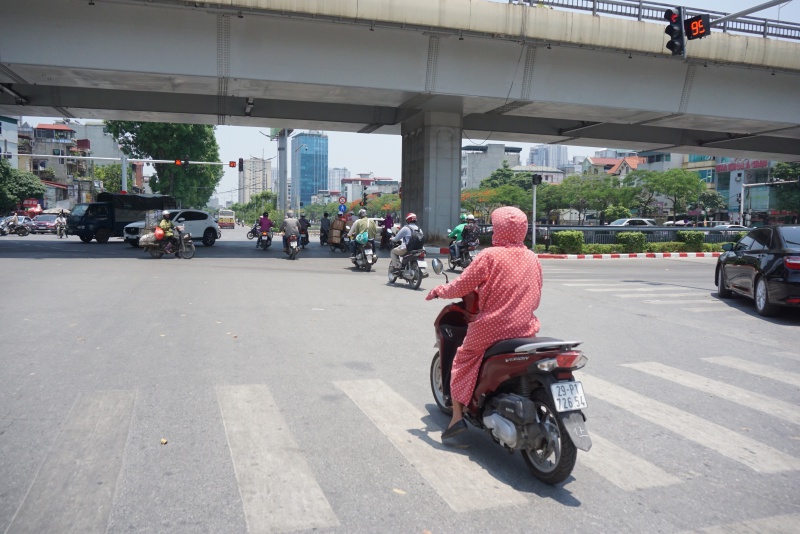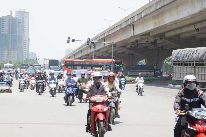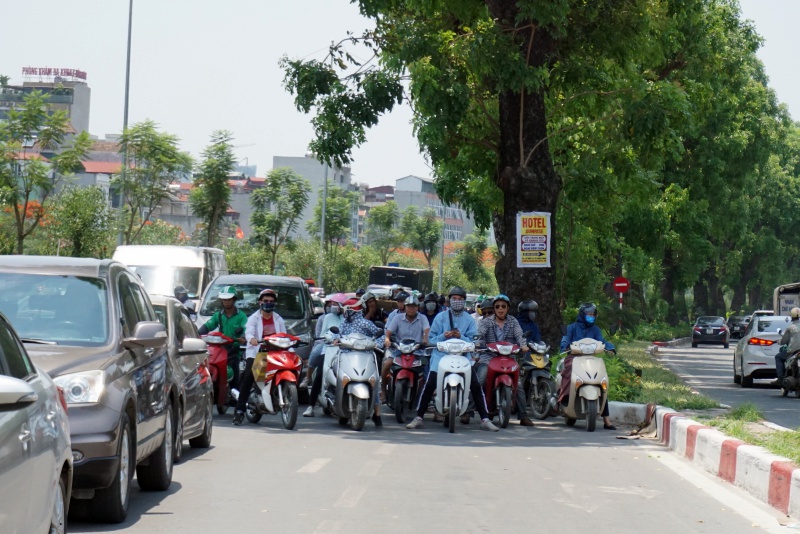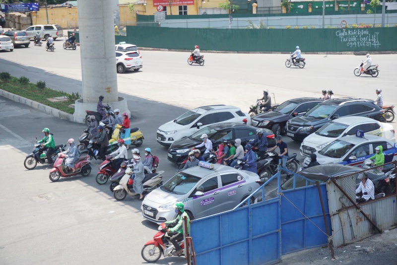 Khu vực đường có đường sắt đô thị bắc qua che mát luôn đông phương tiện xe máy mặc dù đây là làn dành cho ô tô.
