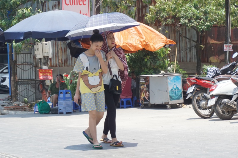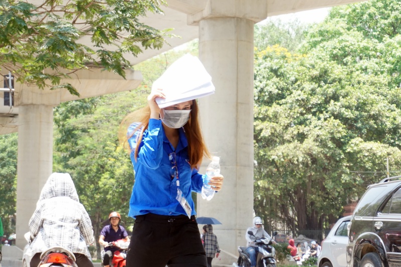 Tại Hà Nội, trời nắng nóng gay gắt với nhiệt độ cao nhất trên 40 độ. Đi ngoài đường mọi người cảm nhận rất rõ với nền nhiệt ngoài trời khi lên đến trên dưới 50 độ C.