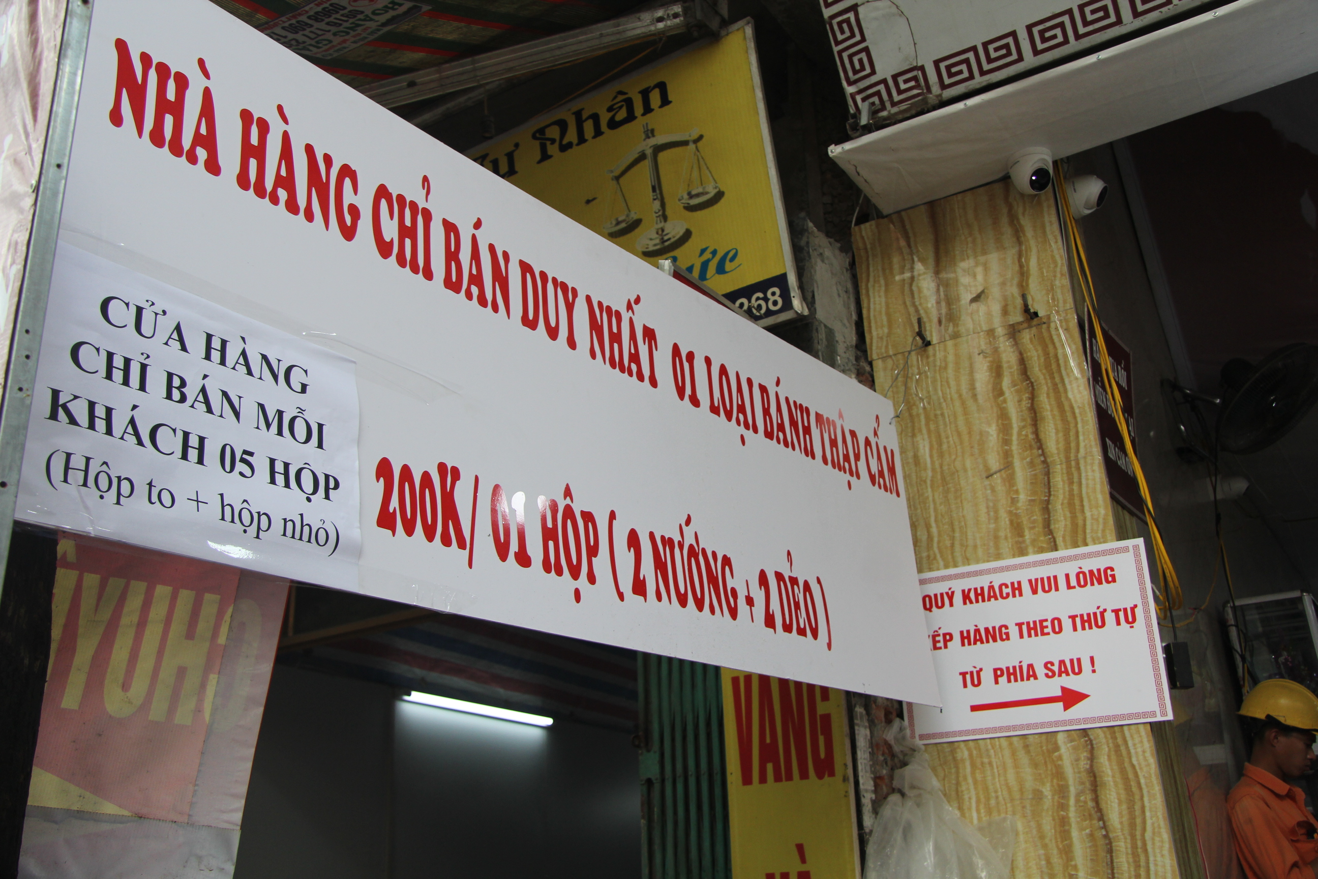 Cung không đủ cầu nên chủ tiệm bánh Bảo Phương đã treo biển bán duy nhất 1 loại bánh thập cẩm và mỗi khách chỉ được mua tối đa 5 hộp với giá 200 nghìn đồng/hộp.