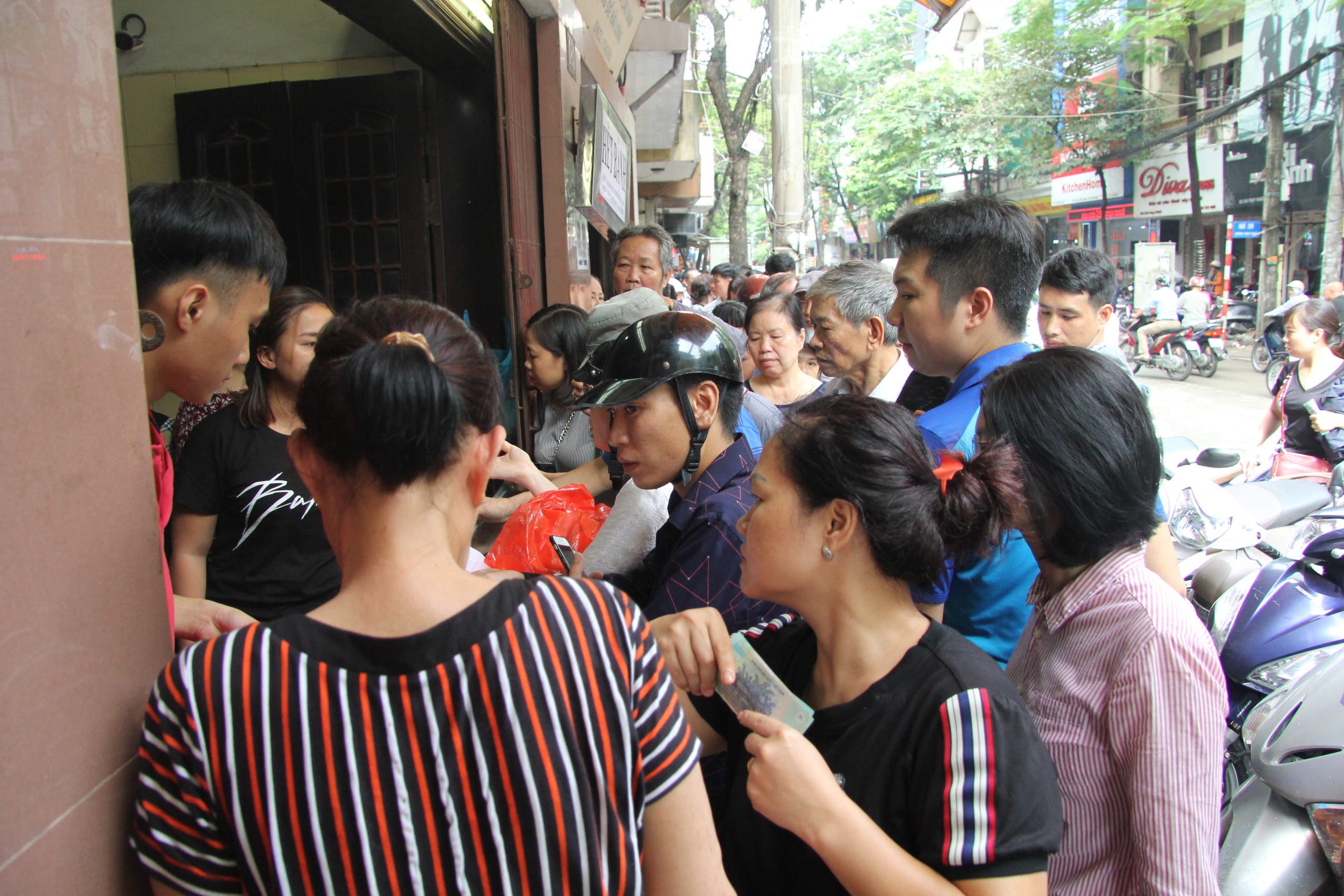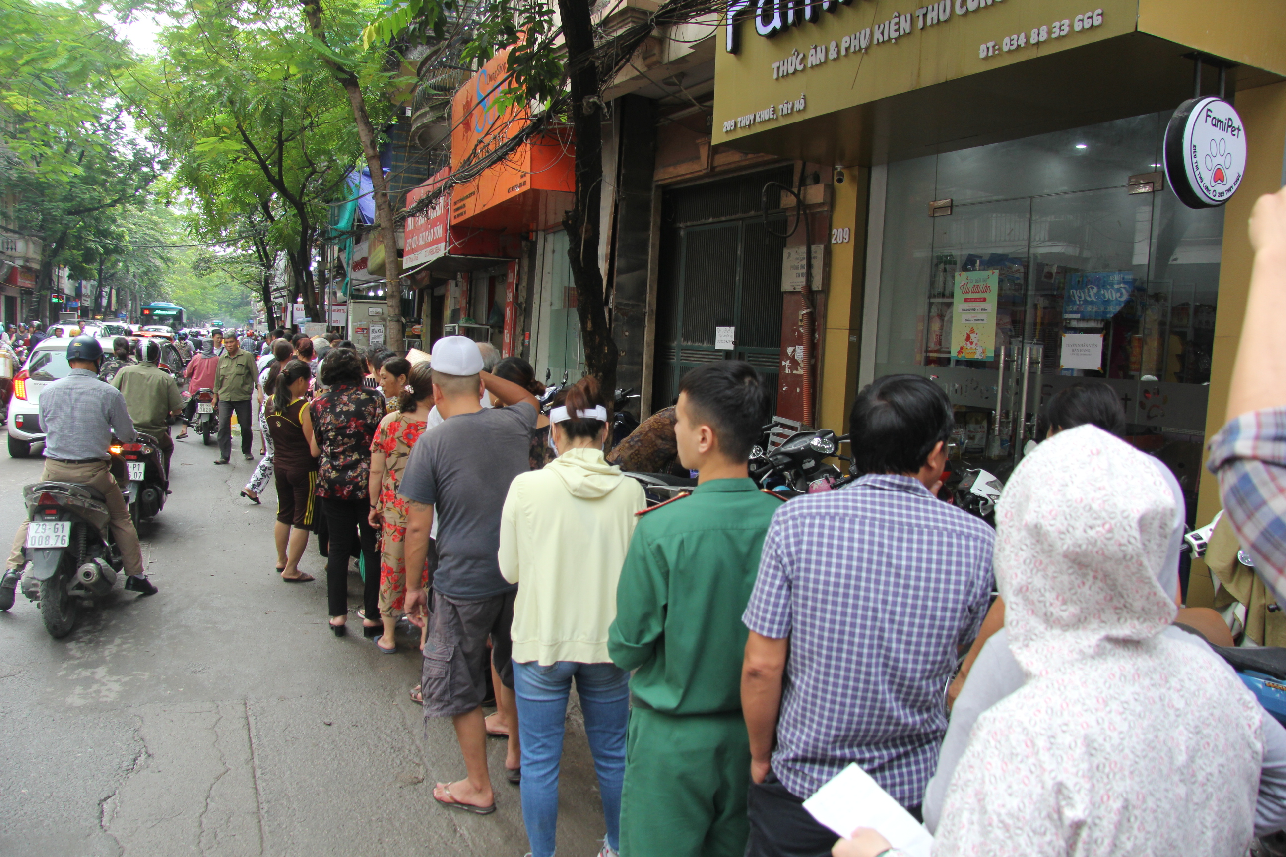Cảnh người dân kiên nhẫn xếp thành hàng dài cả trăm mét chờ đợi khiến nhiều người đi qua vô cùng ngạc nhiên.