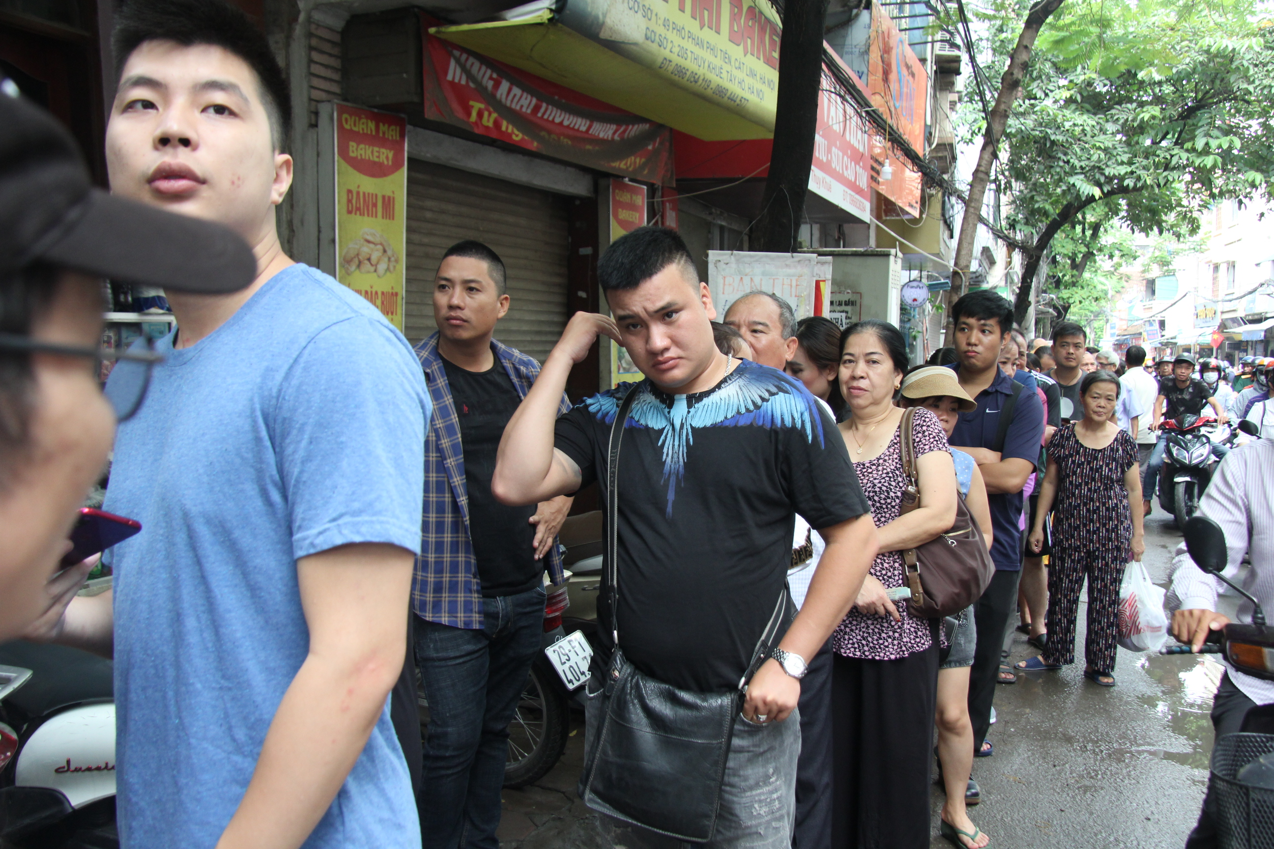 Một số người đôi lúc xảy ra tình trạng chen lấn khiến nhân viên bảo vệ tiệm bánh phải đứng ra nhắc nhở.