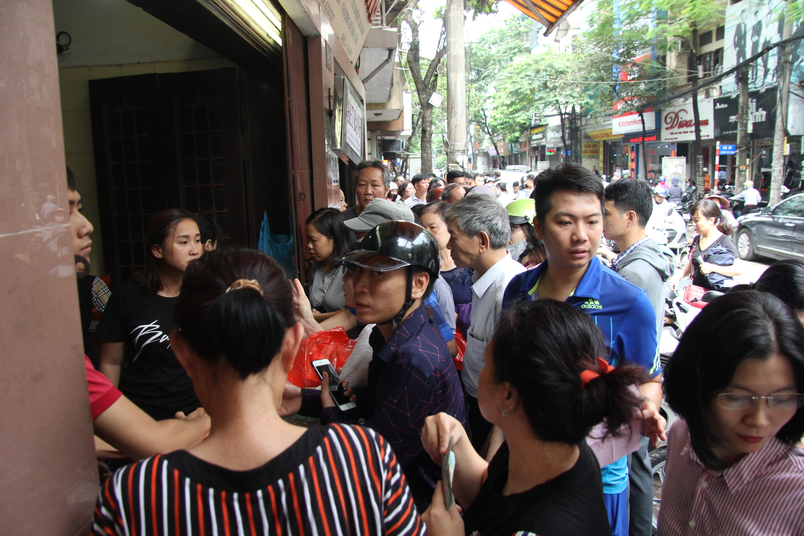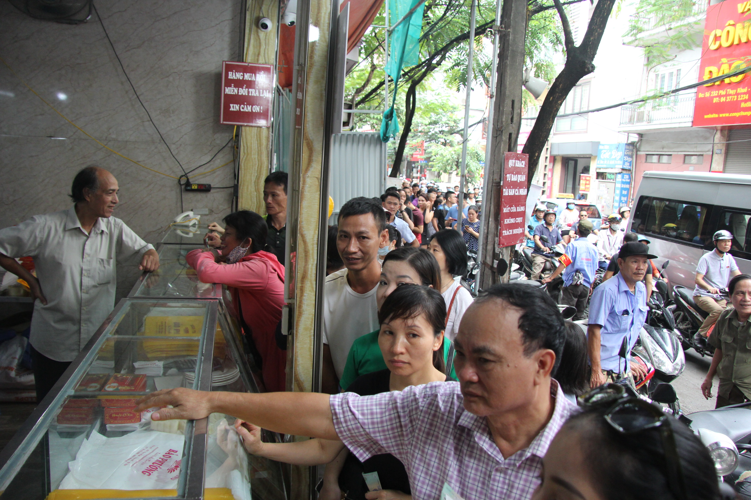 Nhiều người dân cho biết, họ xếp hàng cả tiếng đồng hồ nhưng vẫn chưa tới lượt. Với người Hà Nội thì việc xếp hàng chờ đợi mua bánh Trung thu như một nét đặc biệt và năm nào họ cũng kéo nhau tới đây mua.