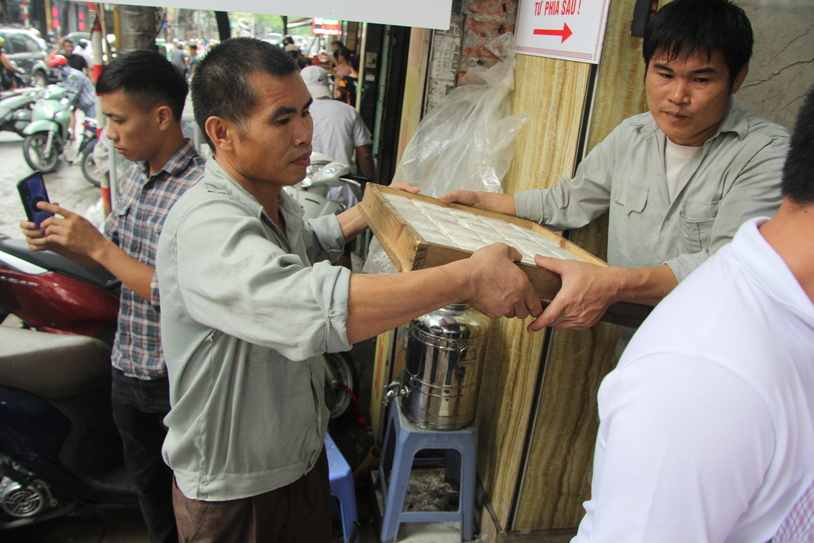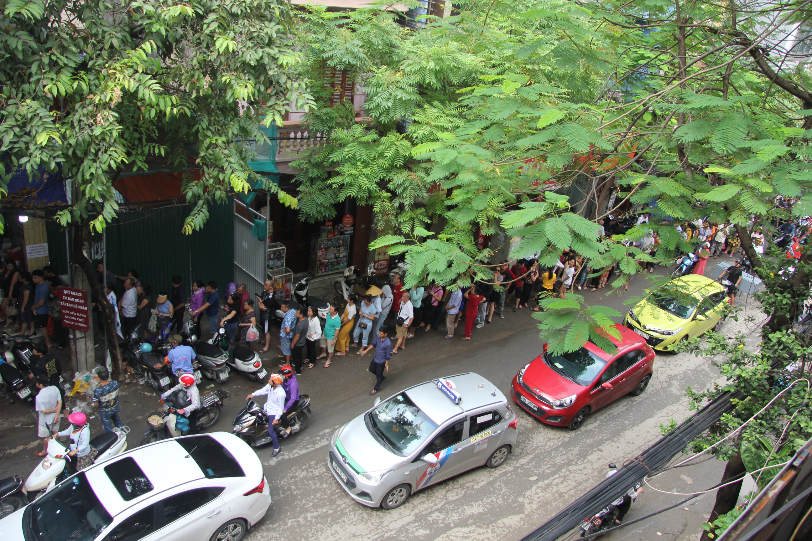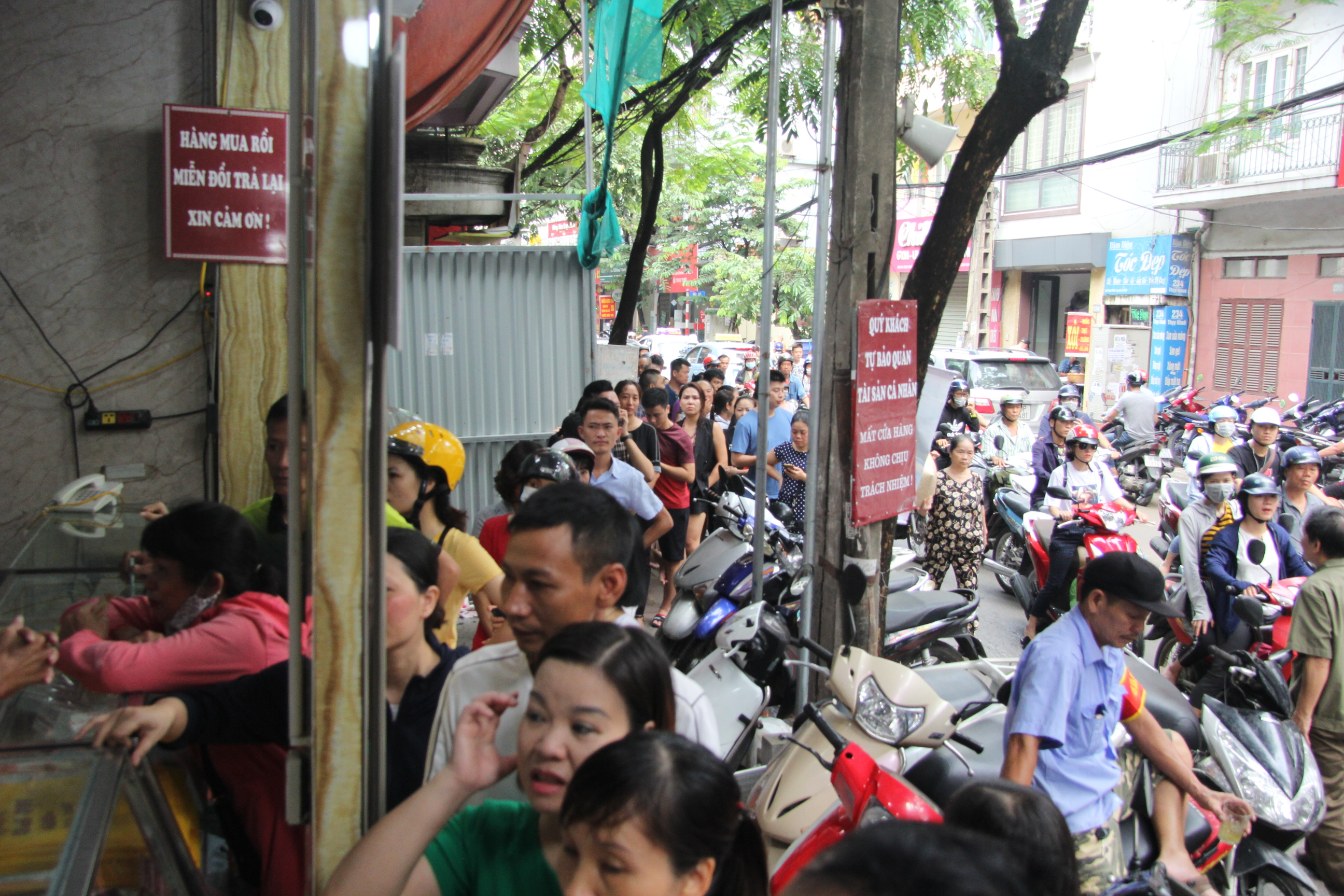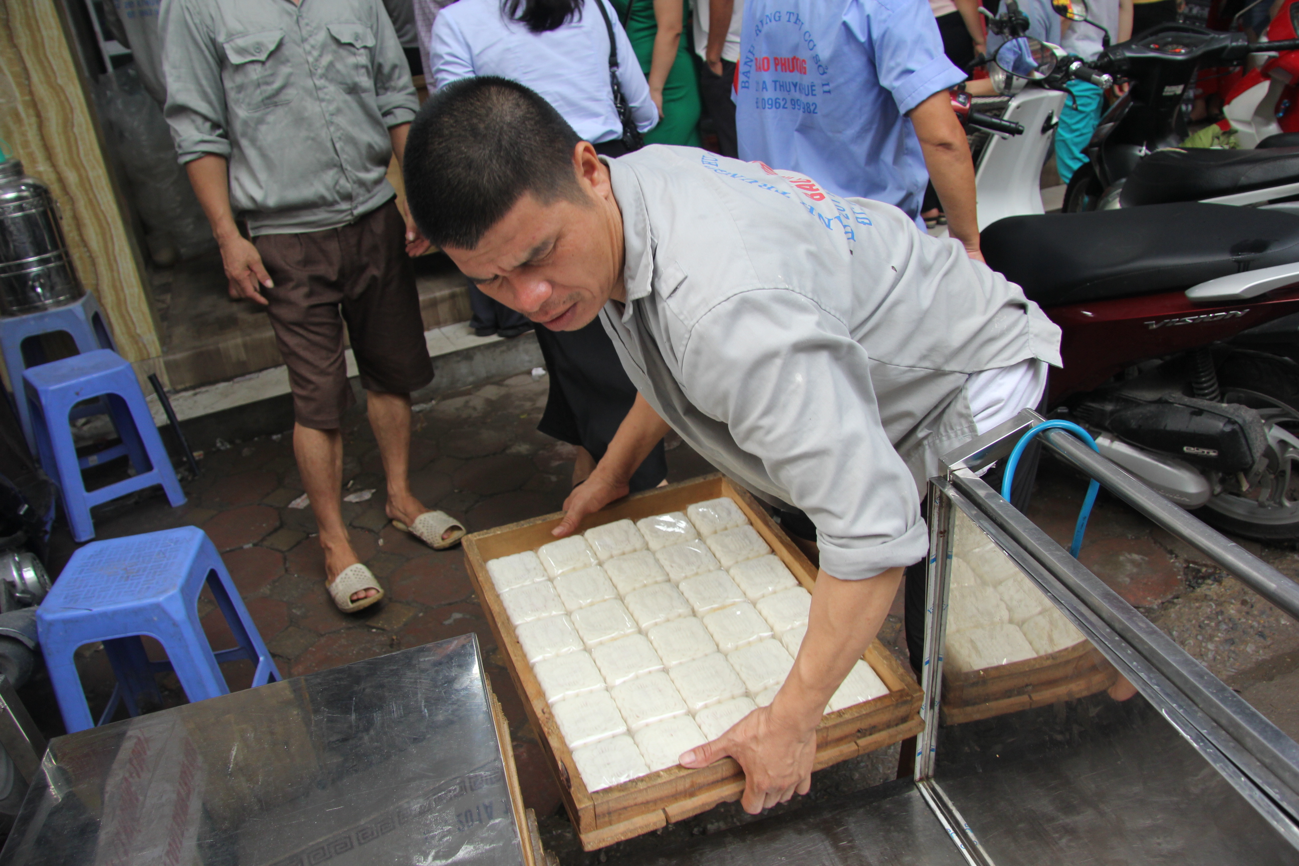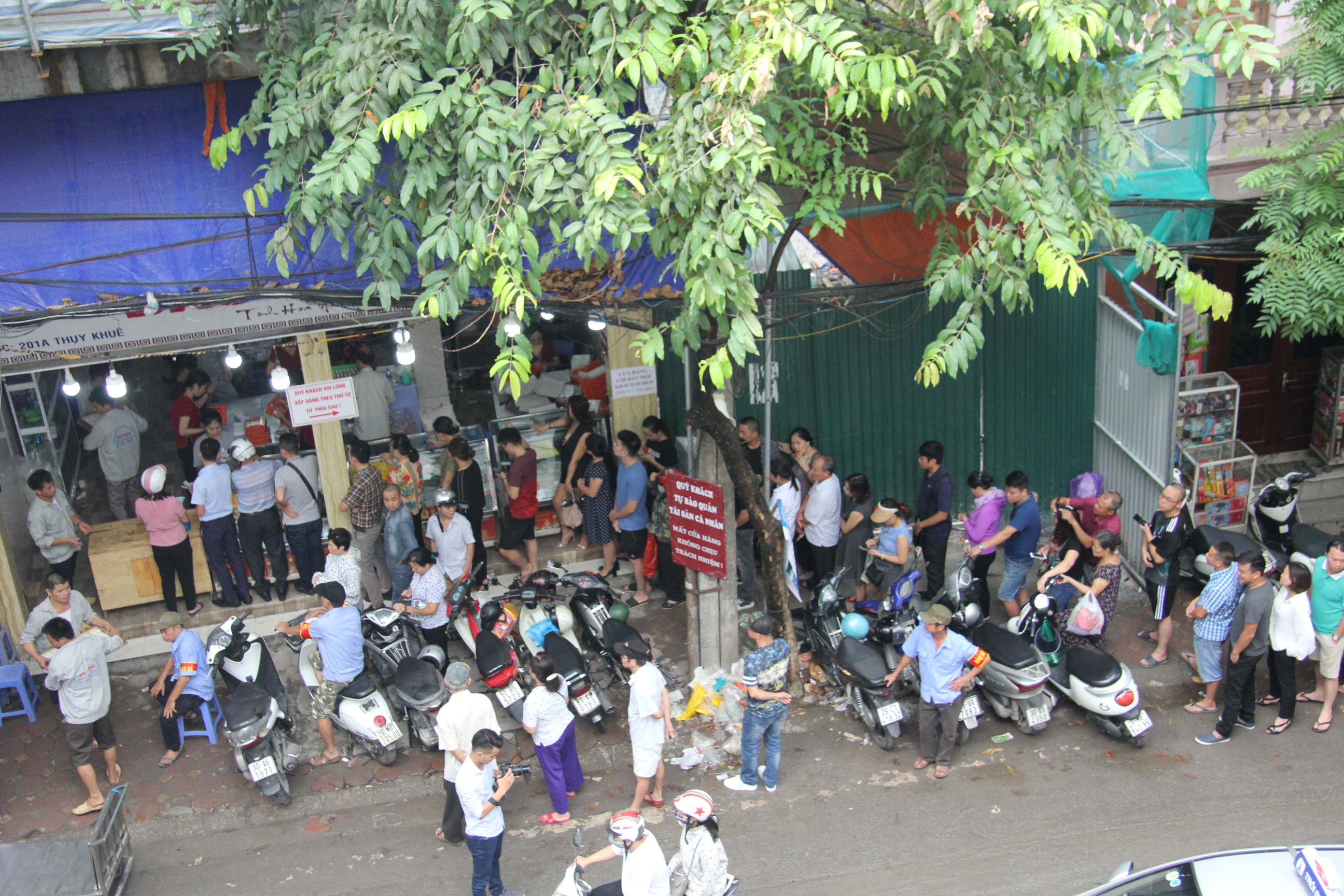 Cảnh xếp hàng này diễn ra từ sáng sớm tinh mơ đến tận trời tối khuya. Chủ tiệm bánh đã thuê nhiều bảo vệ sắp xếp chỗ để xe cho khách, phân luồng giao thông, phục vụ nước…