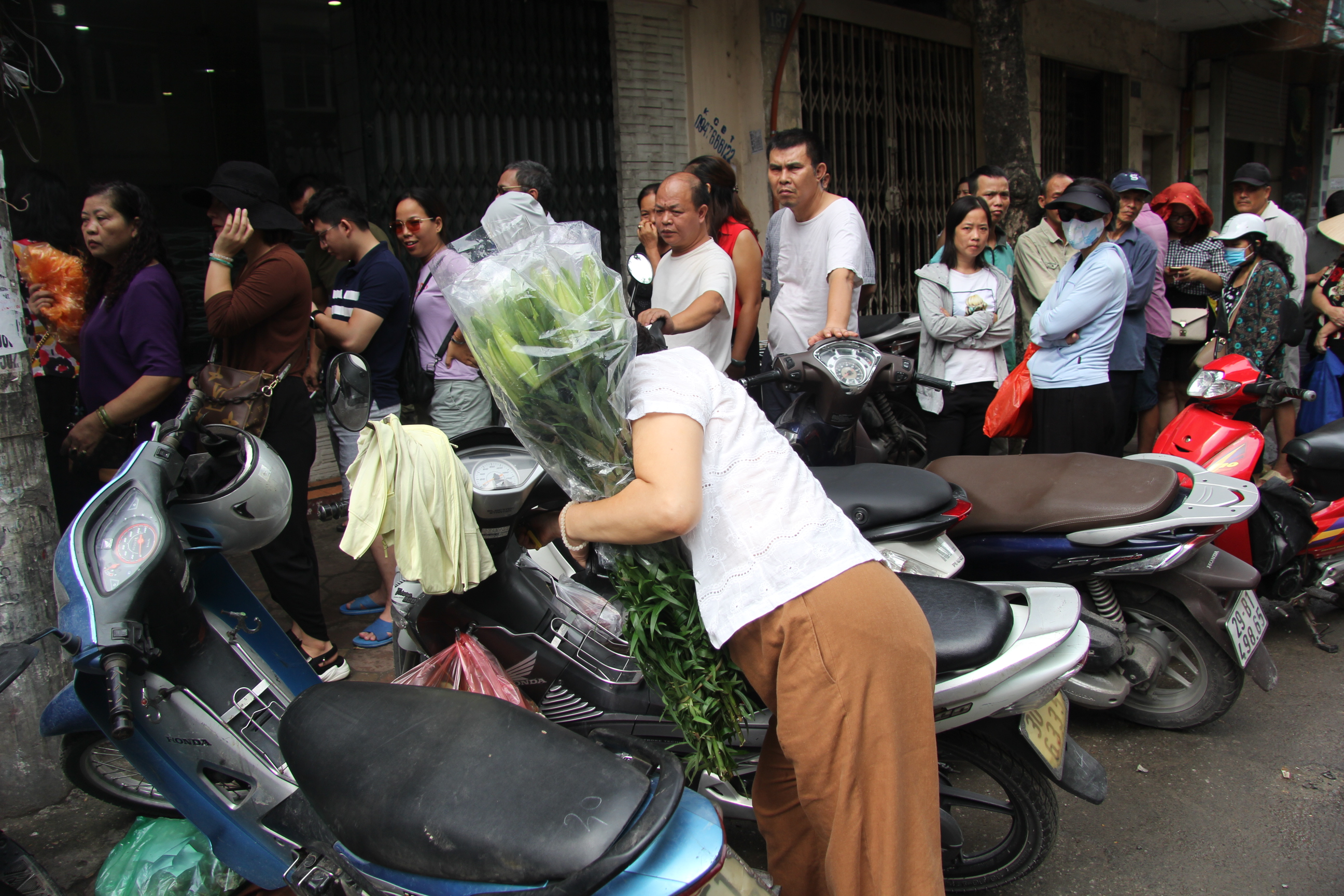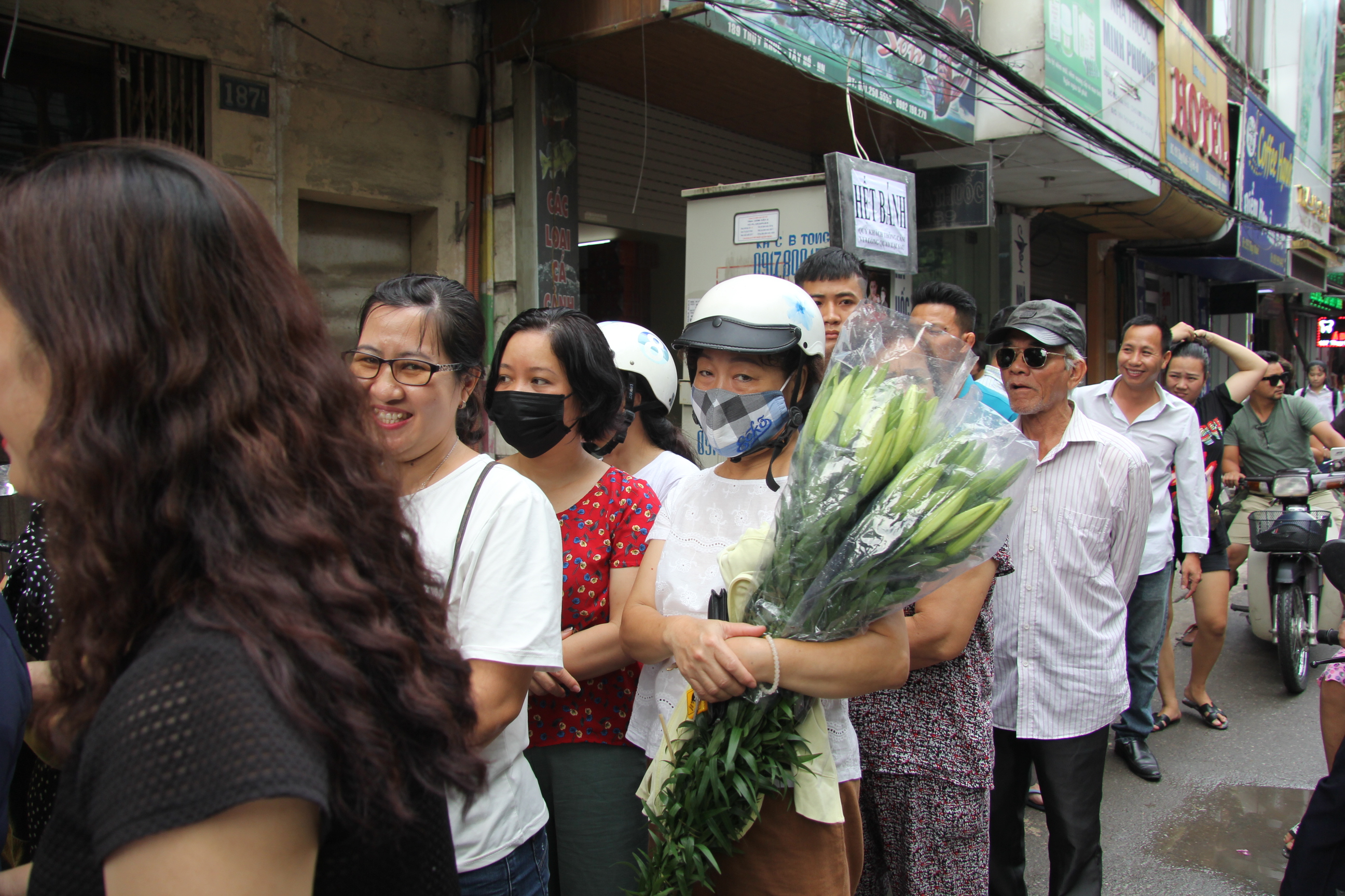 Lượng mua quá lớn người phụ nữ ôm bó hoa sau một hồi xếp hàng không đủ kiên nhẫn đã rời đi.