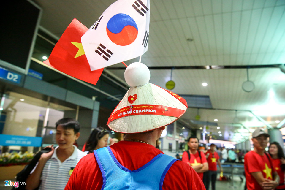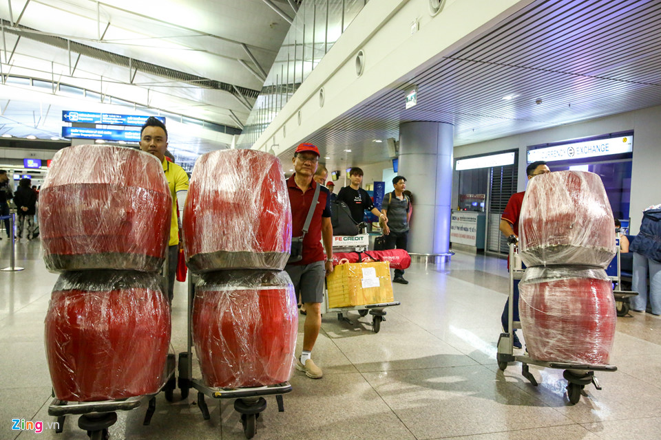 Không khí ngay từ sân bay Tân Sơn Nhất đã rất nóng khi các CĐV chuẩn bị sẵn băng rôn, cờ, biểu ngữ,…