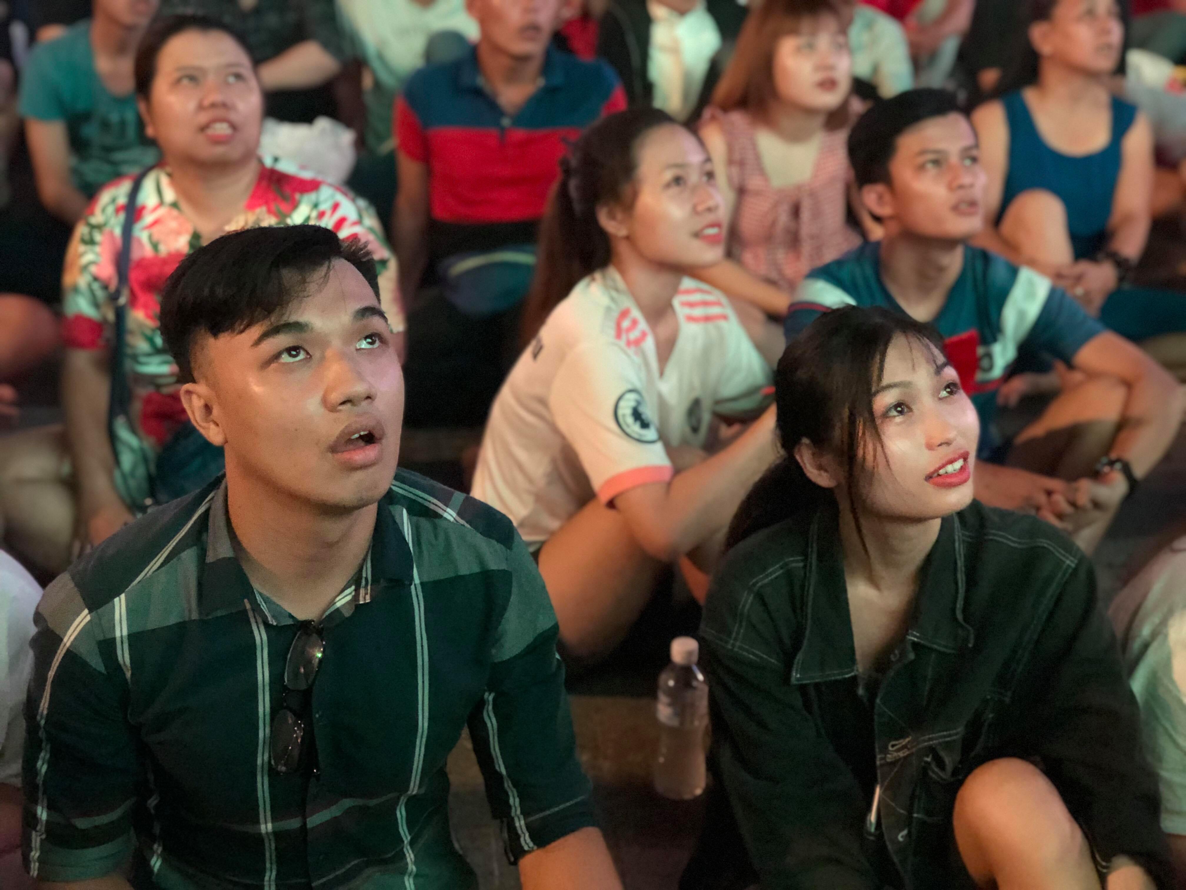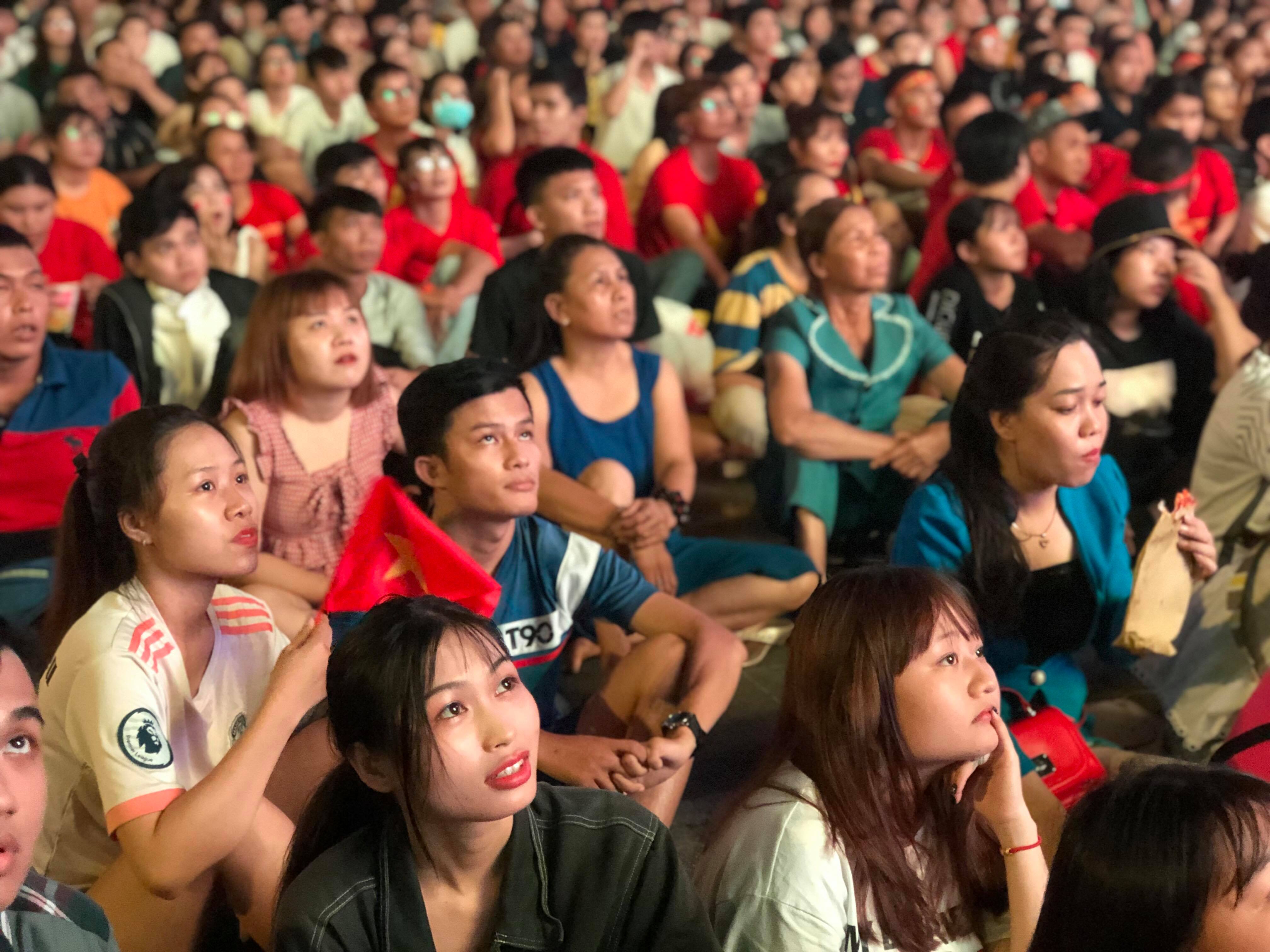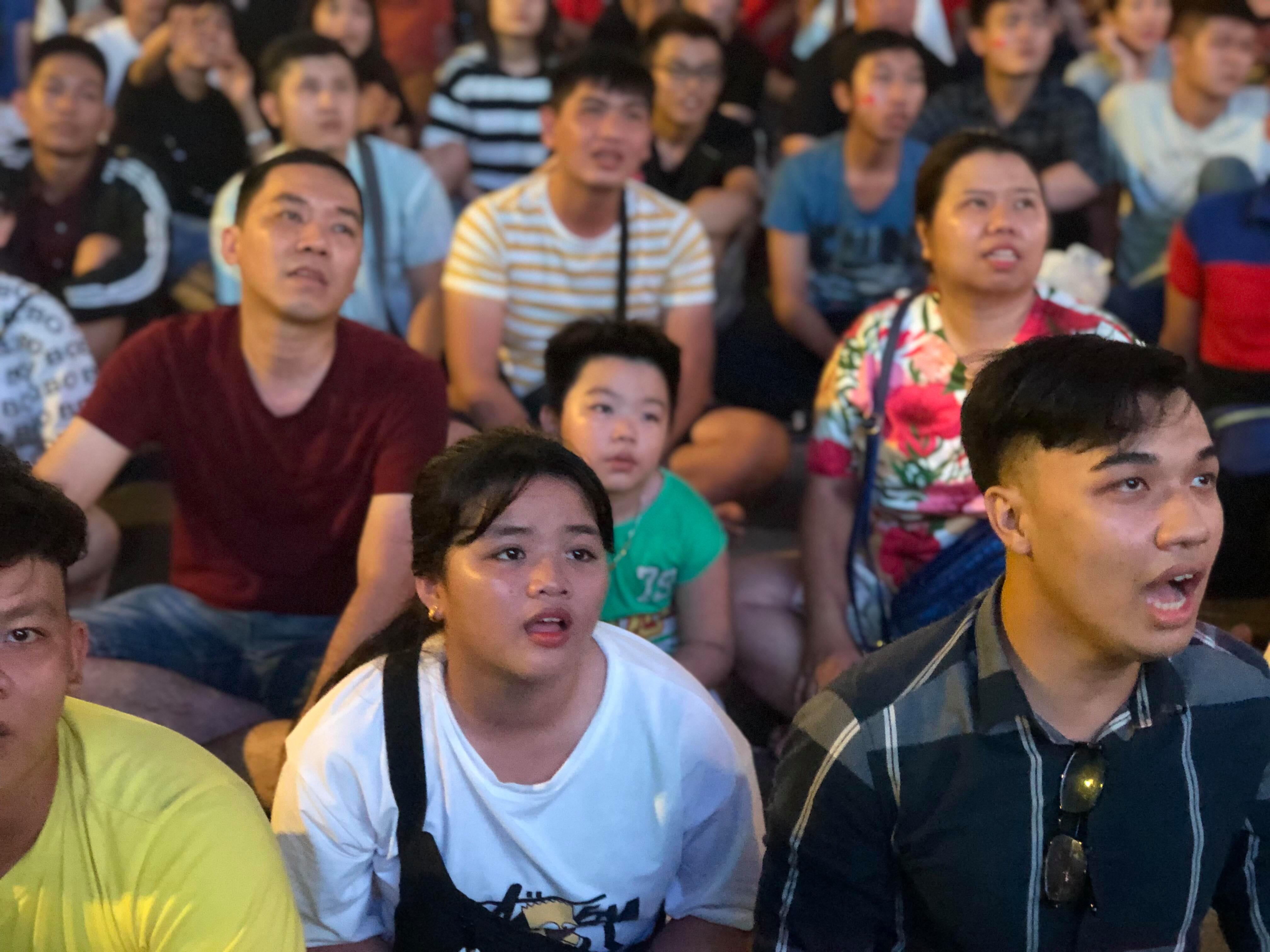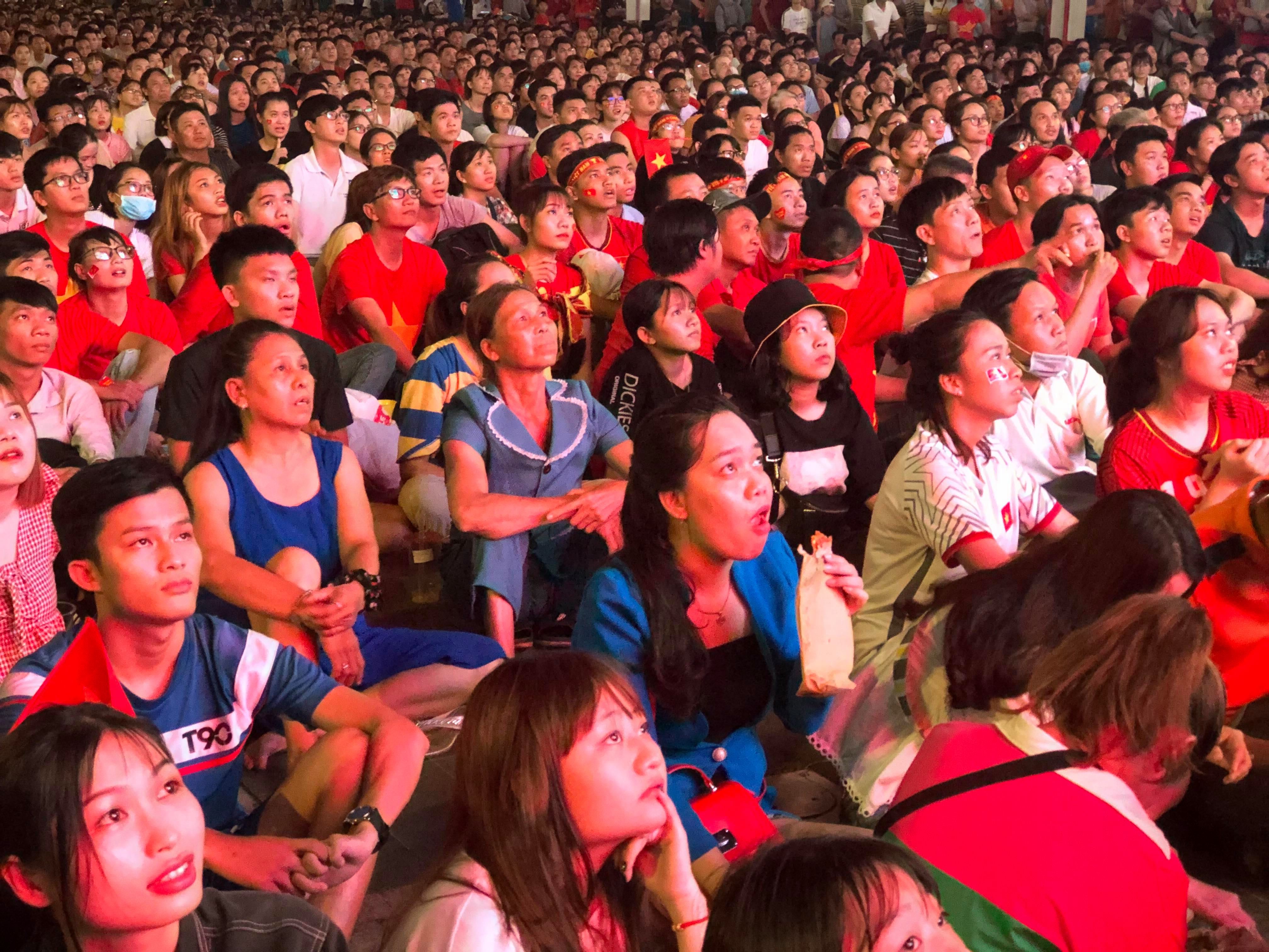 Khán giả tại phố đi bộ (TPHCM) hồi hộp theo dõi những phút cuối cùng của trận đấu.