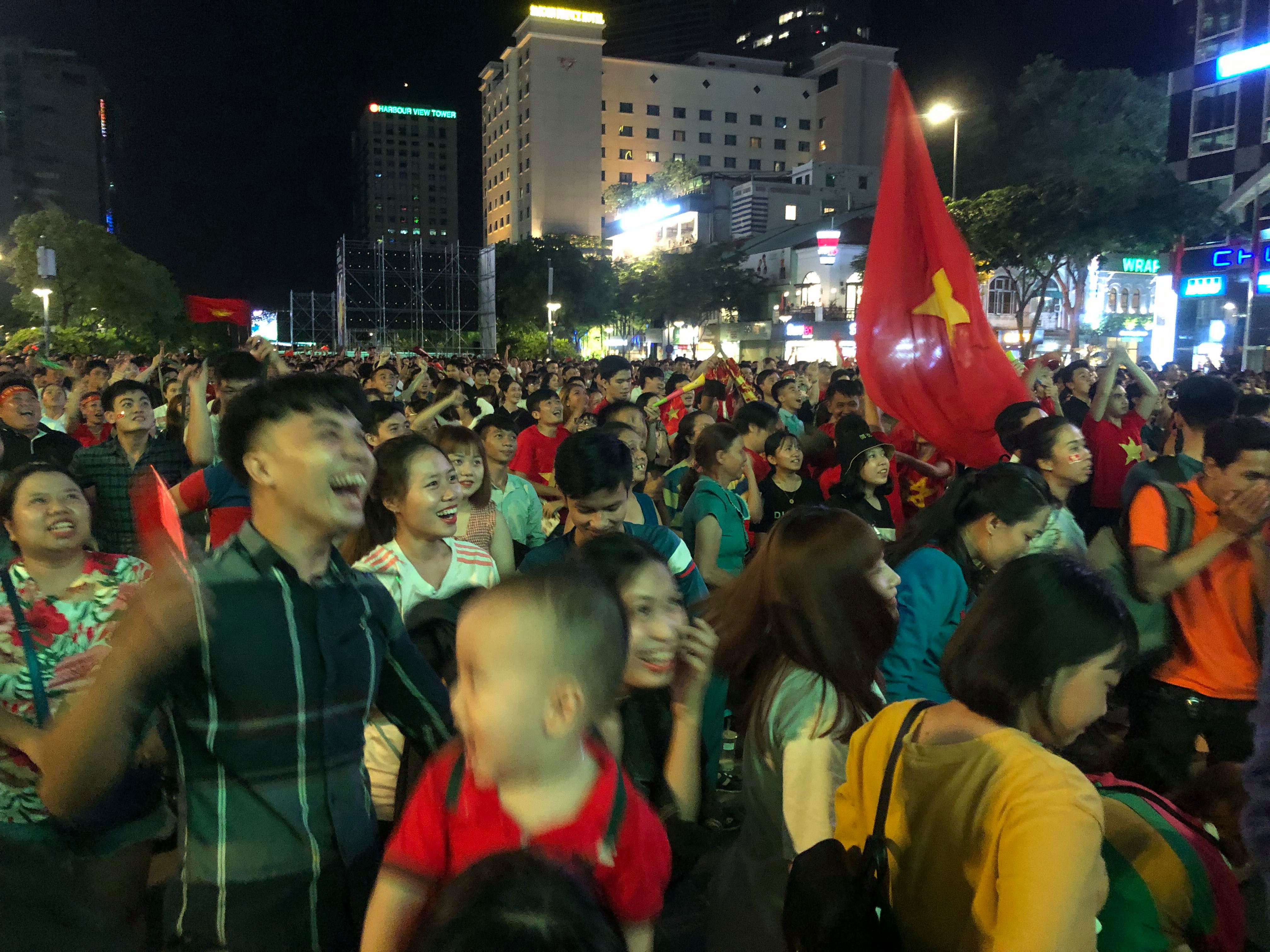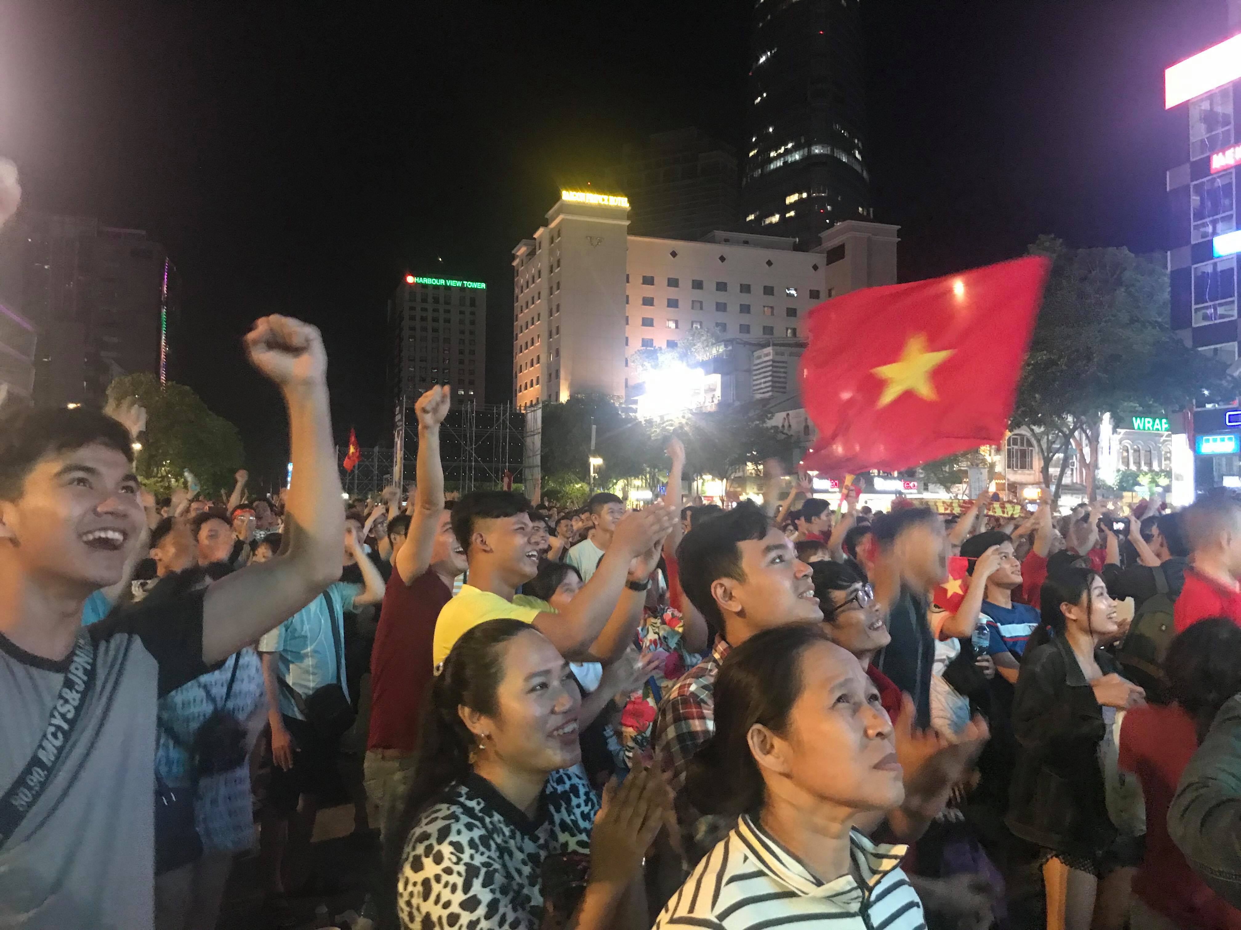 Bàn thắng đầy bất ngờ trên khiến nhiều người hâm mộ đội tuyển Việt Nam vô cùng phấn khởi. Mặc dù không được coi trực tiếp tại sân, nhưng nhiều fan hâm mộ tuyển Việt Nam tại phố đi bộ Nguyễn Huệ đã hết sức phấn khởi với chiến thắng mà đội nhà mang về.