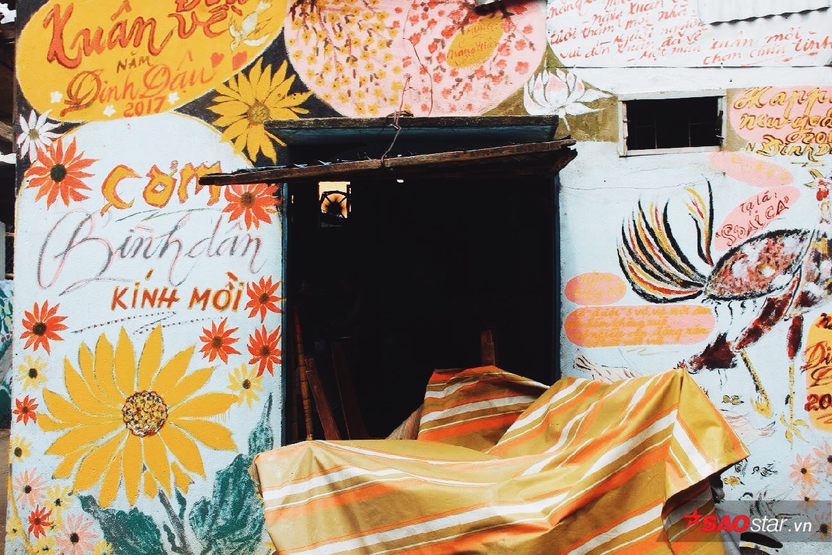 Trong cái xóm nhỏ này, từ cái quán cơm bình dân đến cái vách tường trường mẫu giáo đều được chú Minh vẽ. Lúc đầu thấy tường ở dọc đường bẩn quá nên chú tự vẽ, sau đó mọi người cũng hưởng ứng theo rồi nhờ chú vẽ. Lúc hoa lá, lúc câu chúc khi thì cánh đồng. Ai kêu gì chú vẽ nấy, mà vẽ cái gì đẹp đẽ và hạnh phúc thì chú mới vẽ à nghen. Nghệ sĩ chân chính người ta tự trọng lắm!