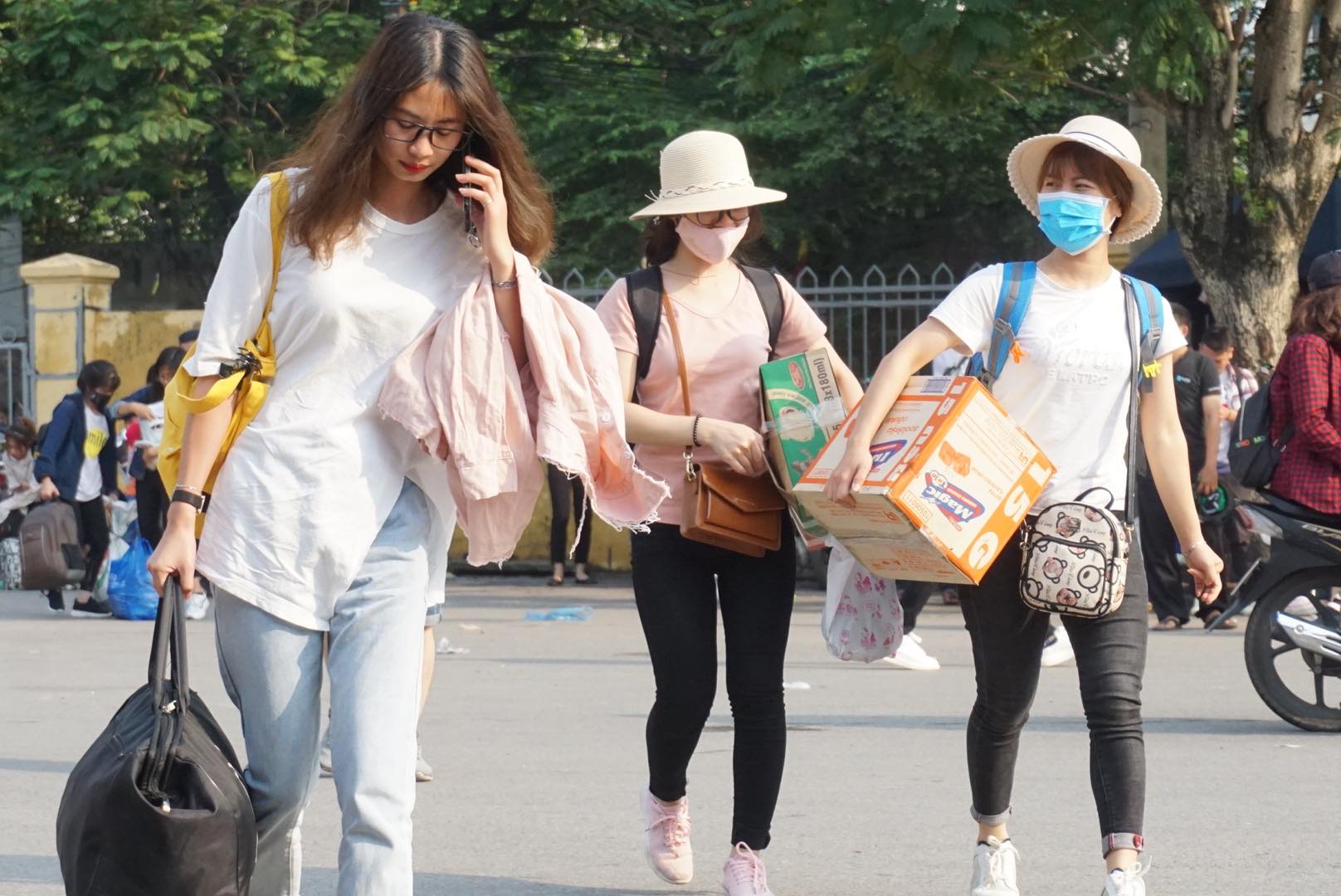 Tại khu vực bến xe Giáp Bát ai nấy đều tay xách nách mang.