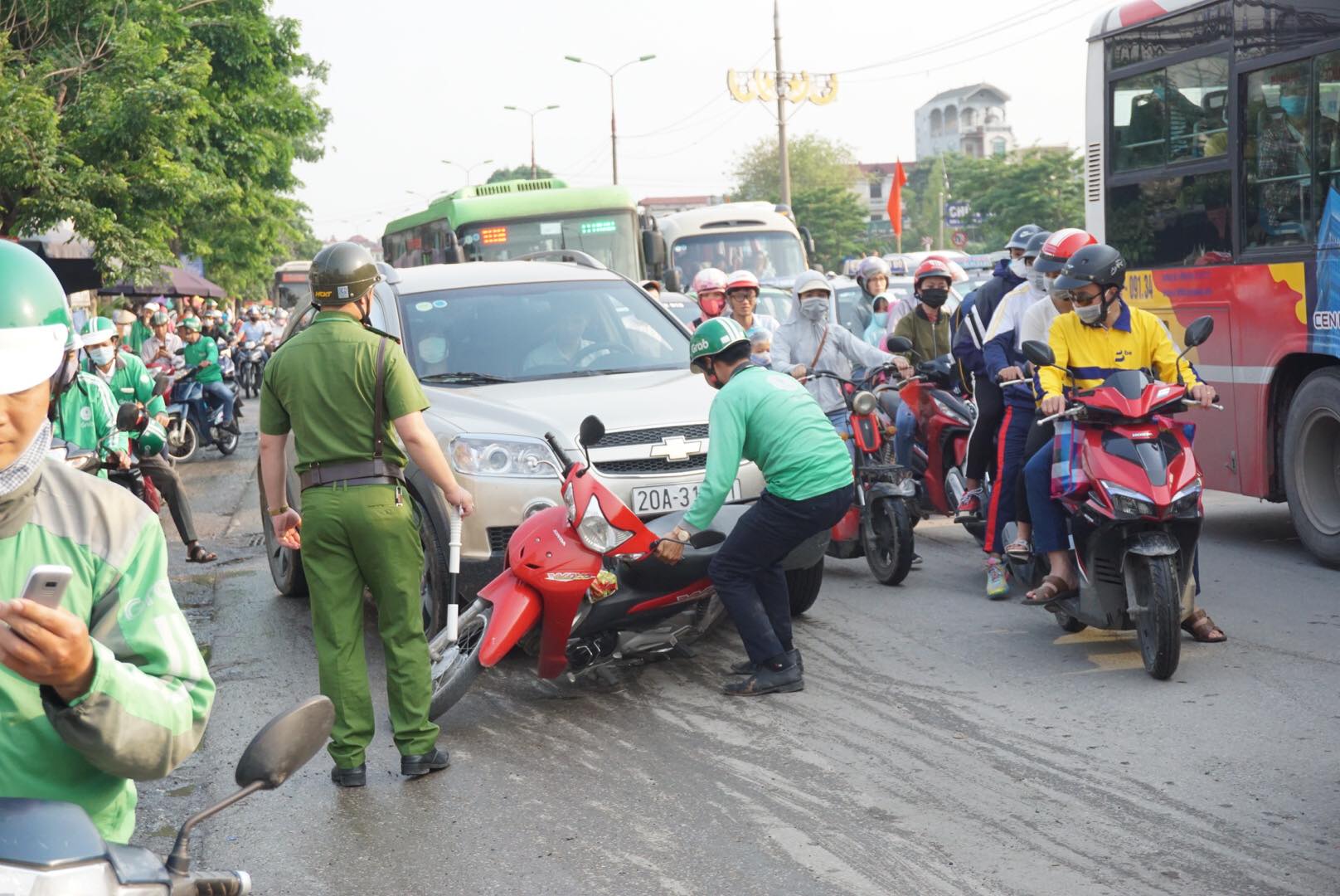 Do đường đông không ít vụ va chạm đã xảy ra. Lực lượng công an, CSGT, Thanh tra giao thông được cử chốt chặn, phân luồng nhiều đoạn đường.