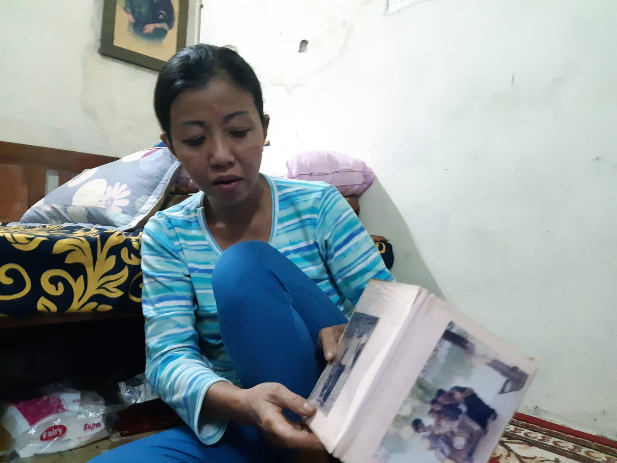 Chị Thư lật dở từng tấm ảnh chụp con gái bị mất tích cách đây 14 năm.
