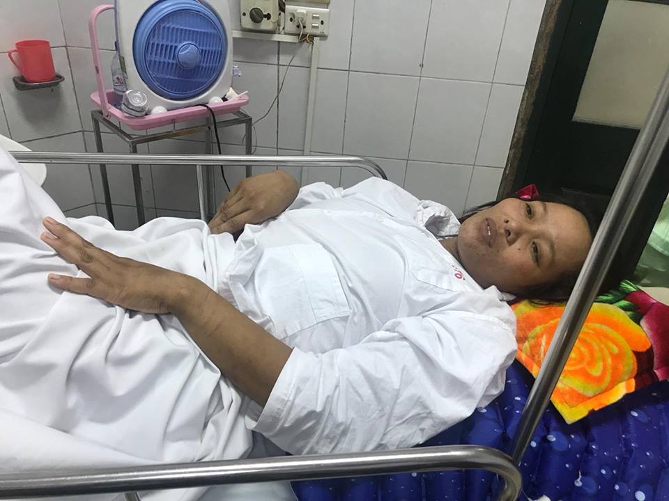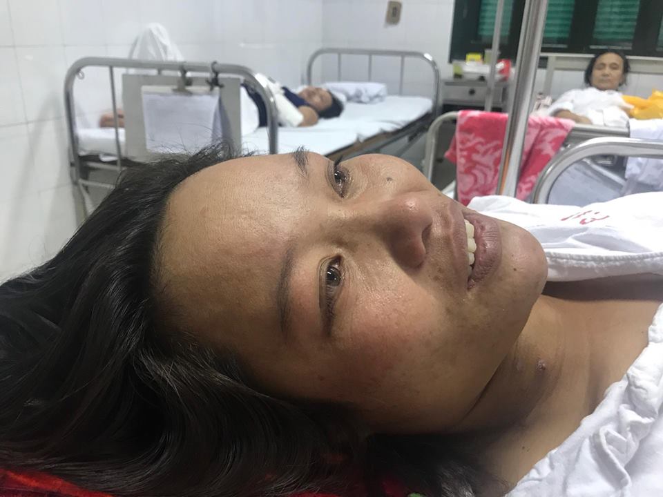 Chăm vợ tại giường bệnh, anh Nguyễn Văn Điệp (35 tuổi, chồng chị Thơm) cho biết, tính đến thời điểm hiện tại, chị Thơm đã trải qua 3 ngày cấp cứu, thêm lần mổ hôm nay (ngày 14/8) là lần thứ 2.