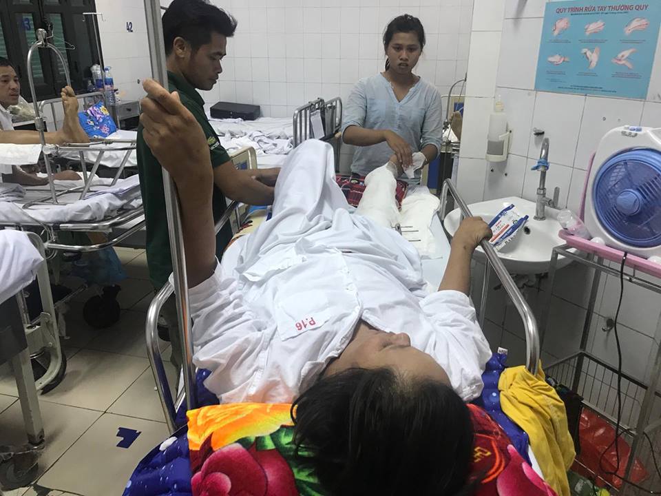 Vợ tôi sau khi được sơ cứu, xe cấp cứu chưa tới, mọi người gọi xe taxi để đưa vợ tôi lên viện nhưng 4 chiếc taxi từ chối vì máu ở chân chảy ra quá nhiều và phải dùng xe tải chở cô ấy đi bệnh viện. Khi đi được 4km thì xe cứu thương tới chờ vào bệnh viện đa khoa tỉnh Thái Bình rồi chuyển thẳng lên Bệnh viện Việt Đức”, anh Điệp nhớ lại