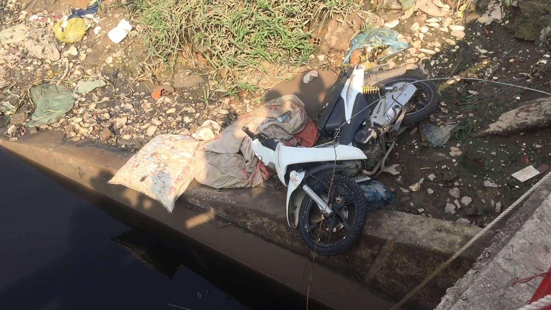 Khoảng 6h30 cùng ngày, một số người dân đi qua khu vực dưới chân cầu Cống Đập Rạch Chiếc (phường Phước Bình, quận 9, TP. HCM) thì phát hiện 1 chiếc xe Wave màu trắng mang BKS: 59X2 - 550… nằm ngay mé sông nhưng không thấy người.