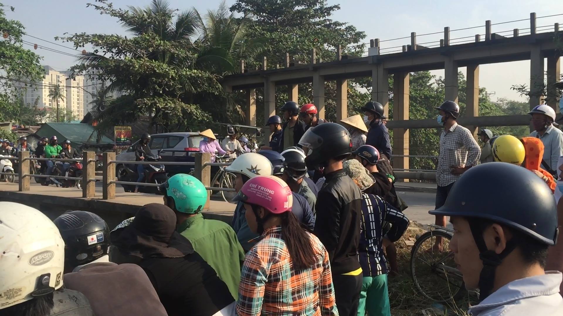 Hàng trăm người dân hiếu kỳ kéo đến theo dõi vụ việc, khiến giao thông ùn ứ kéo dài.