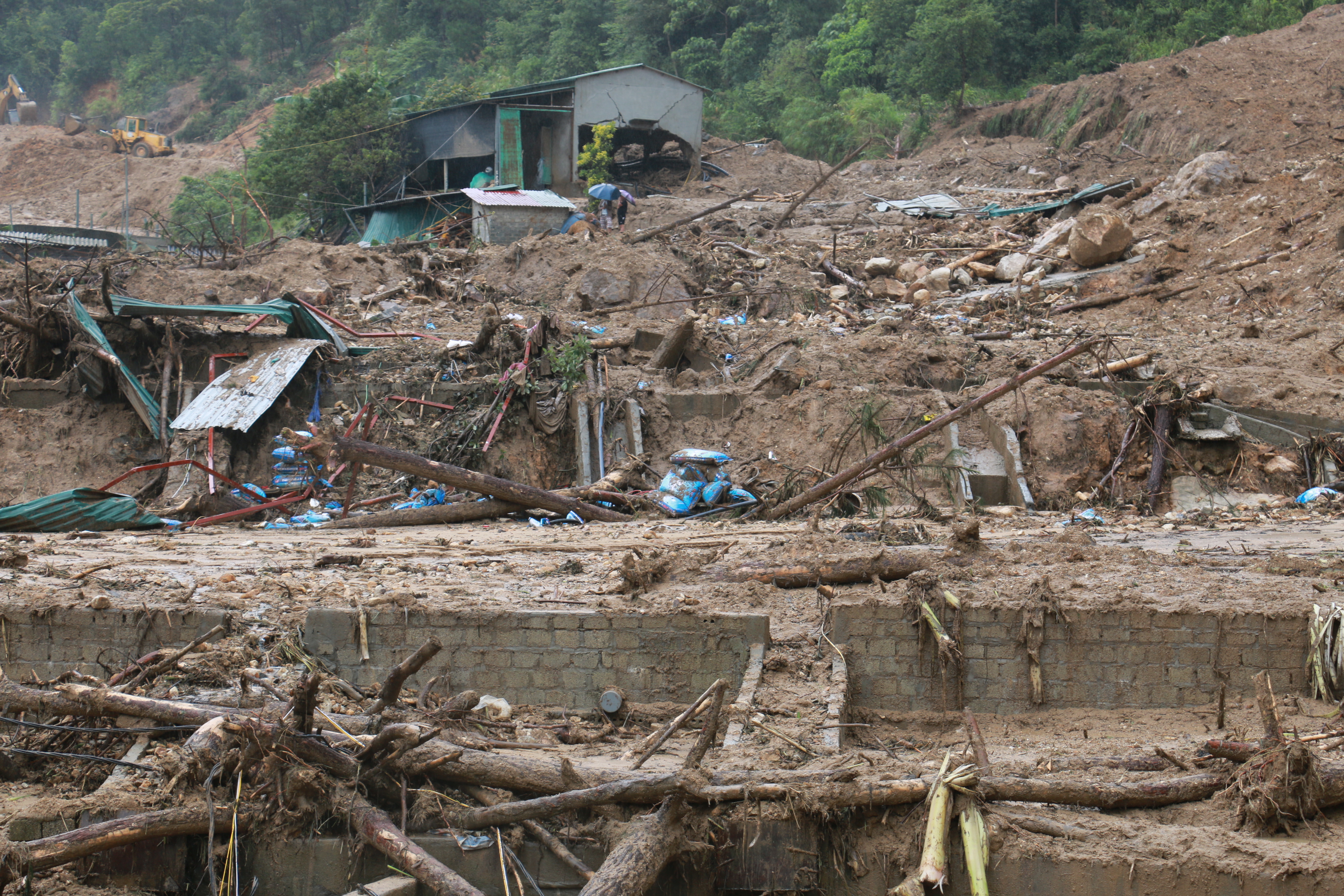 Hai đợt sạt lở ở huyện Tam Đường, Lai Châu gia đình bà Phương bị vùi lấp ao cá, người chồng bị lũ cuốn đi mất tích.