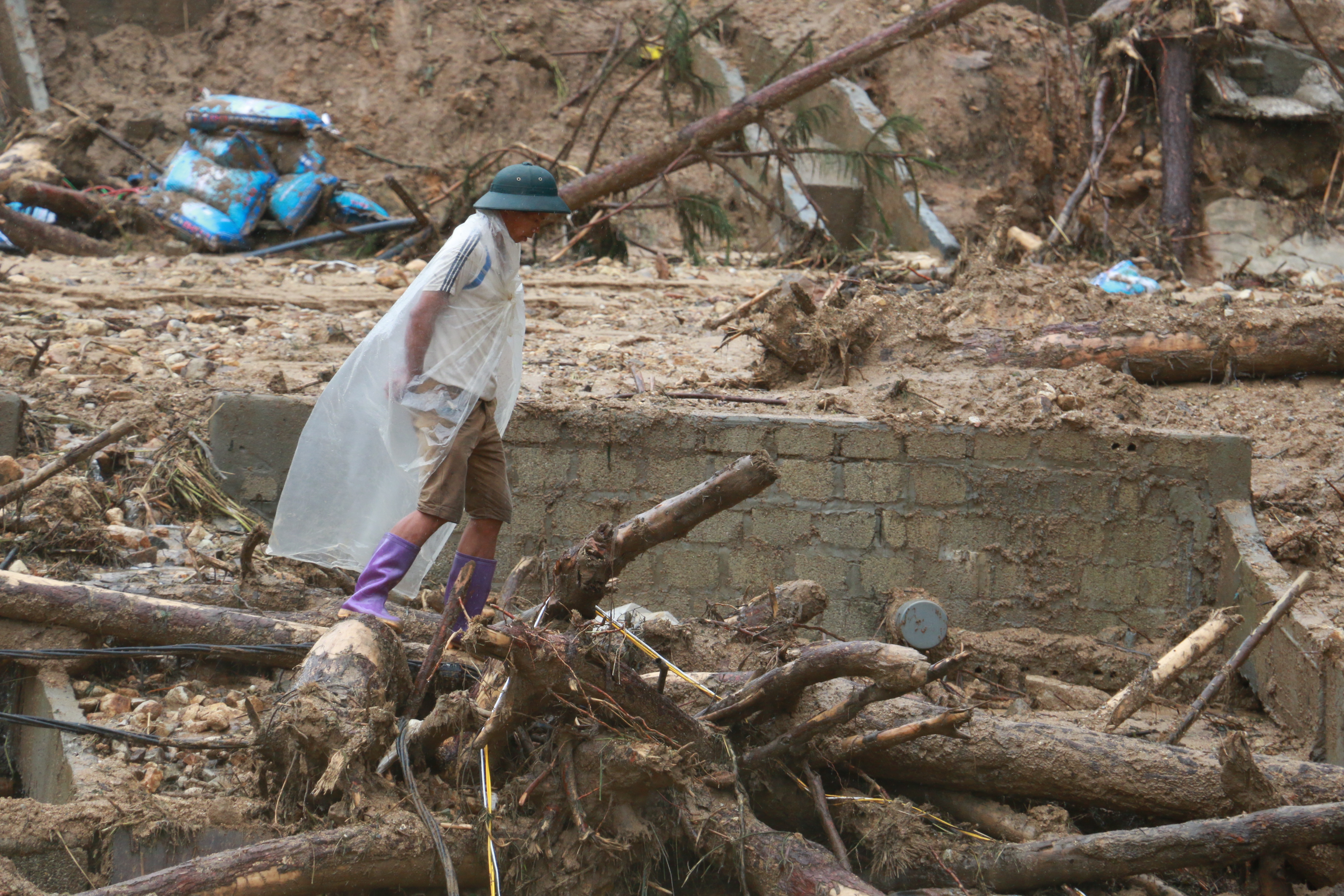 Anh Hải Long, khoảng 8h30 ngày 24/6, nước lũ trôi rác về phía ao nuôi cá gia đình nên bố anh ra vớt. Không may, bờ bị sạt lở đã cuốn ông theo dòng nước lũ.