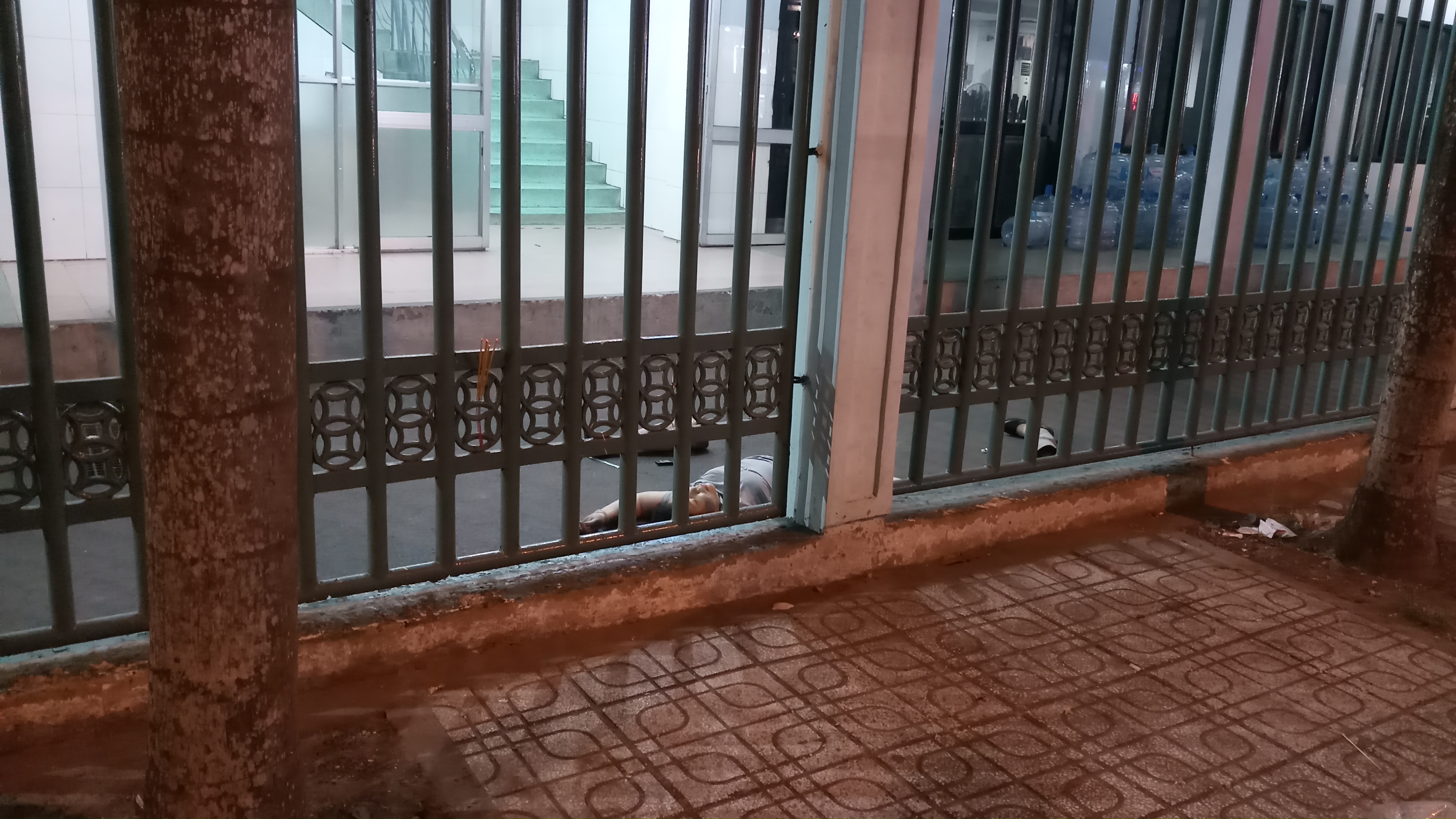 Người phụ nữ khuyết tật nằm bất động trong khuôn viên ĐH Công Nghiệp.