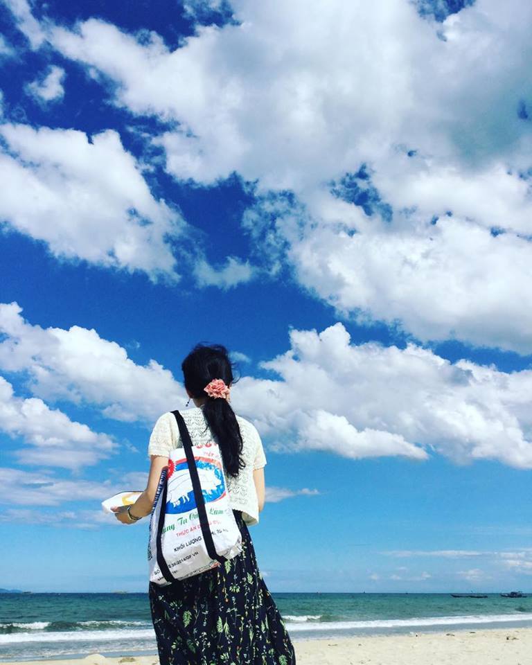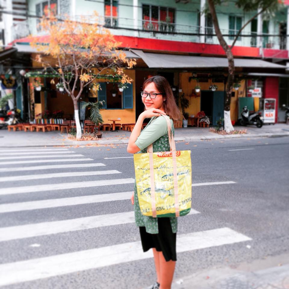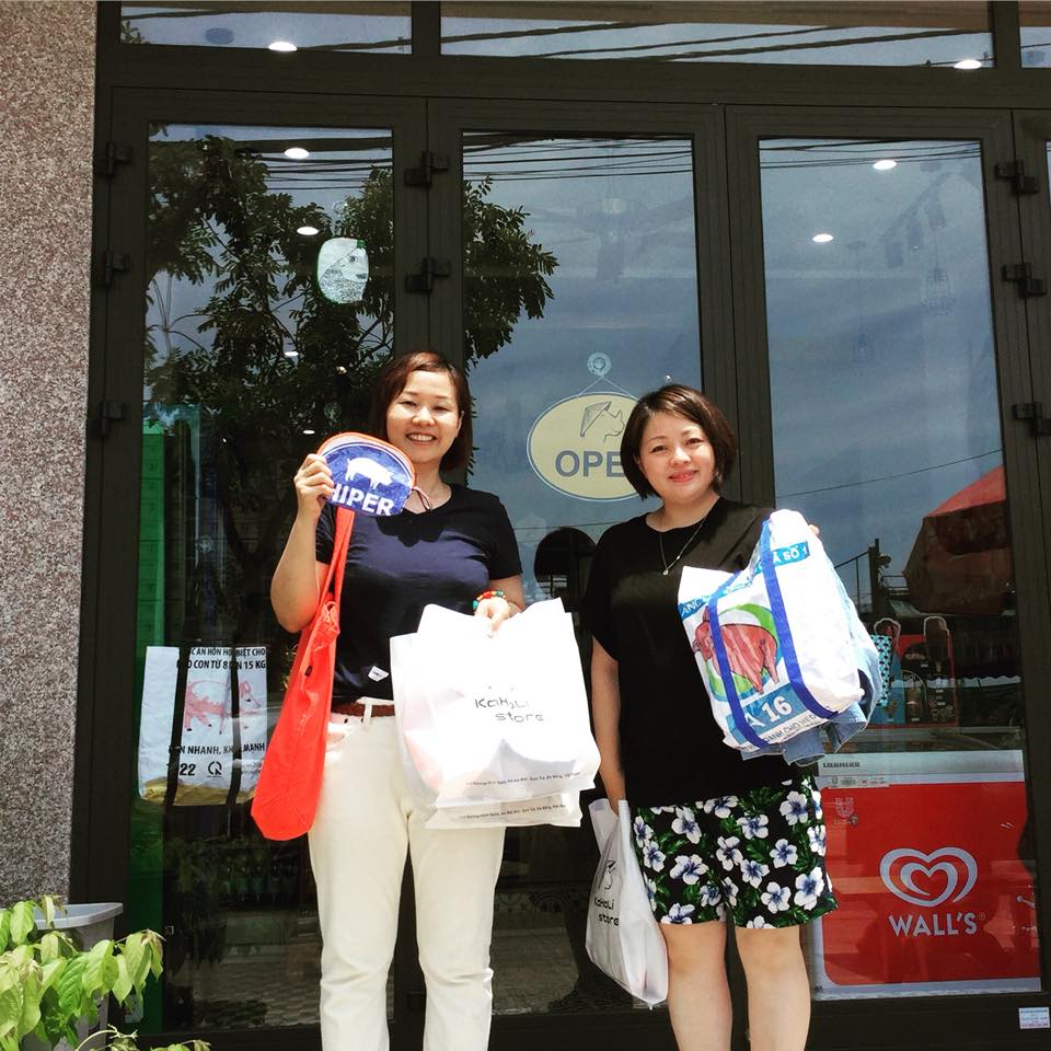 Dọc theo bãi biển Mỹ Khê ở Đà Nẵng, nơi những khách sạn và quán cà phê sang chảnh mọc lên mời gọi mọi du khách đặt chân đến, có một cửa hàng nhỏ gây tò mò cho người qua đường bởi các sản phẩm bày bán tại đây. Không chỉ là đồ lưu niệm, chúng còn là những vật dụng sử dụng hằng ngày được tạo ra từ vỏ bao thức ăn gia súc.