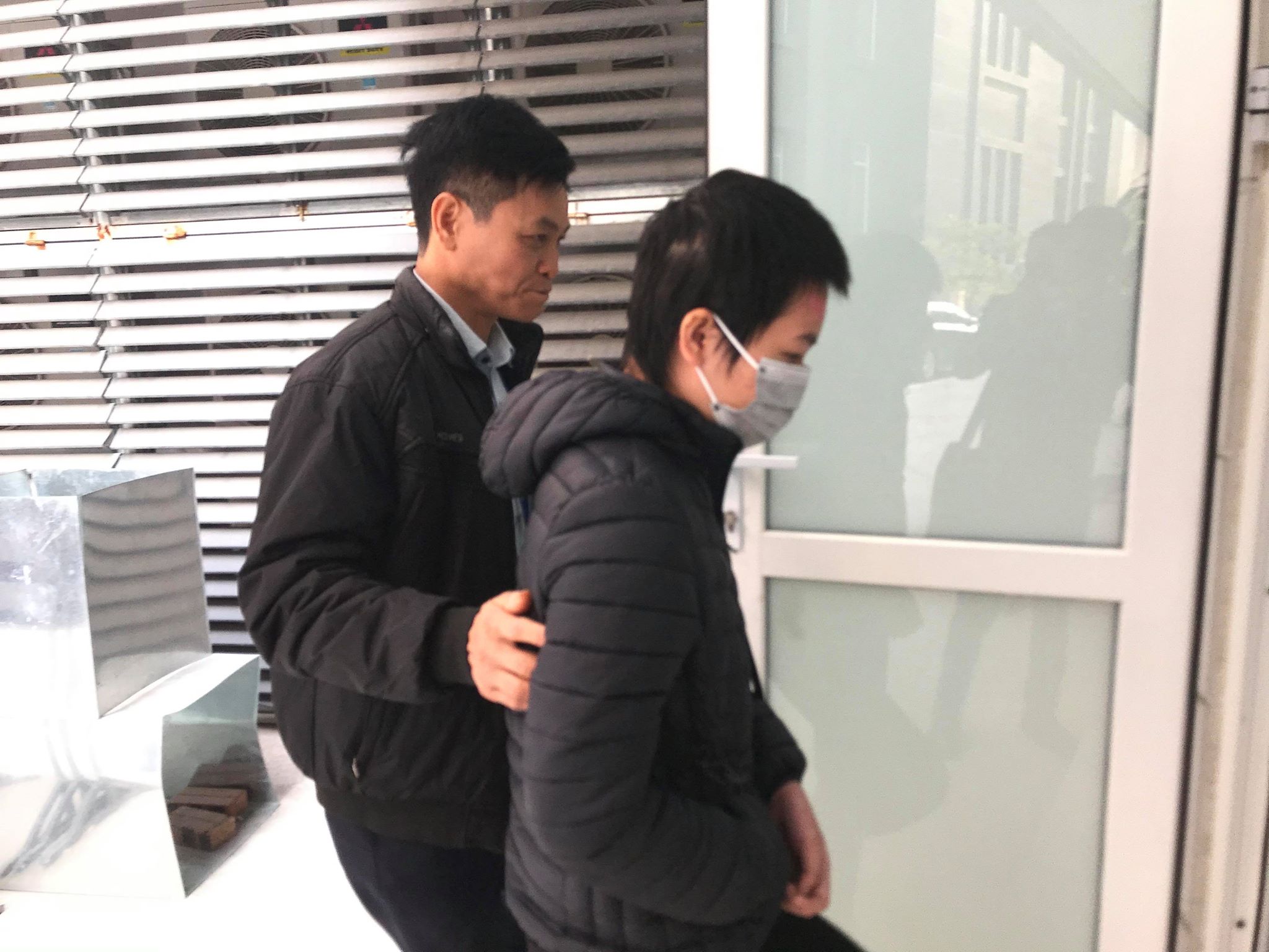 Chị Nhung được chồng là anh Nguyễn Văn Hiệp dìu đến toà.