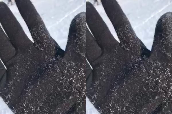 Vừa đáp xuống Bắc Cực, tuyết đã đóng từng mảng trên găng tay.