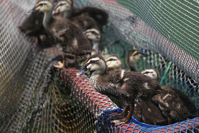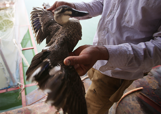 Nhiều con vịt tự phá lưới bay ra ngoài nhưng chỉ vài hôm sau lại tìm cách bay về kiếm ăn quanh bè nuôi, bởi nó đã quen với nguồn thức ăn hàng ngày.