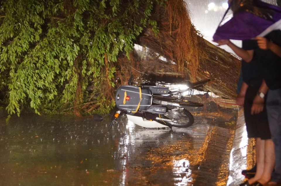 Khoảng 17h30 ngày 29/8, trận mưa giông kinh hoàng bất ngờ xảy ra trên địa bàn thành phố Hà Nội đã khiến nhiều cây lớn bật gốc.