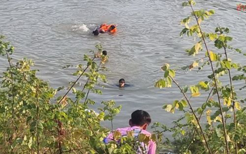 Ngay khi nhận được tin báo, lực lượng chức năng đã tới hiện tới hiện trường, nhanh chóng triển khai việc tìm kiếm hai mẹ con trên sông.