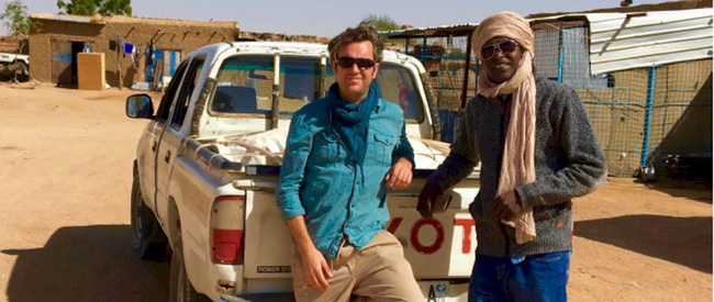Nhà báo Cox (mặc áo xanh) bị bắt cóc sau khi vượt biên sang Sudan.