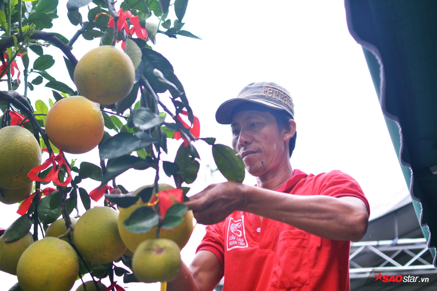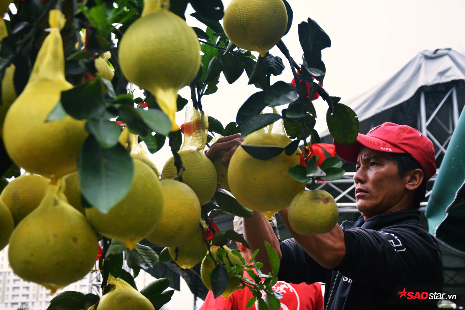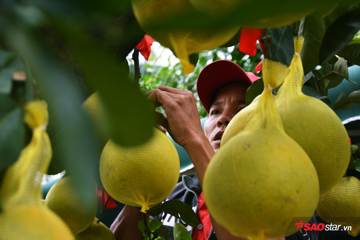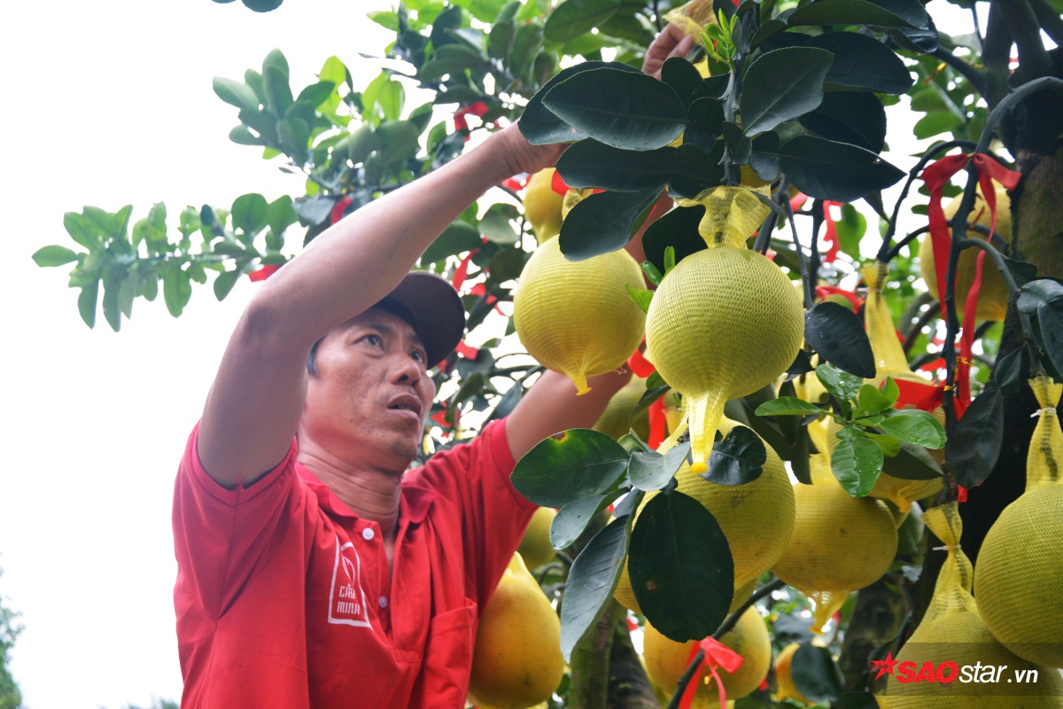 Sau khi đến các nhà vườn tại TP.HCM, nhân công luôn phải túc trực ngày đêm để tưới nước, bón phân, nhổ cỏ, bao các lớp lưới bảo vệ này giúp quả bưởi không bị côn trùng, sâu bọ phá hoại cũng như đảm bảo trái không bị rụng. Ngoài ra, còn gắn câu chúc, câu đối đỏ,… để trang trí nổi bật thêm cho cây. Đang tất bật chăm sóc một cây bưởi, anh Nhựt (nhân công) chia sẻ: “Ban ngày cần phải chăm sóc, lau chùi rồi bọc bưởi cho chắc chắn. Đêm phải phân công người ở lại ngủ để bảo vệ vườn bưởi…”.