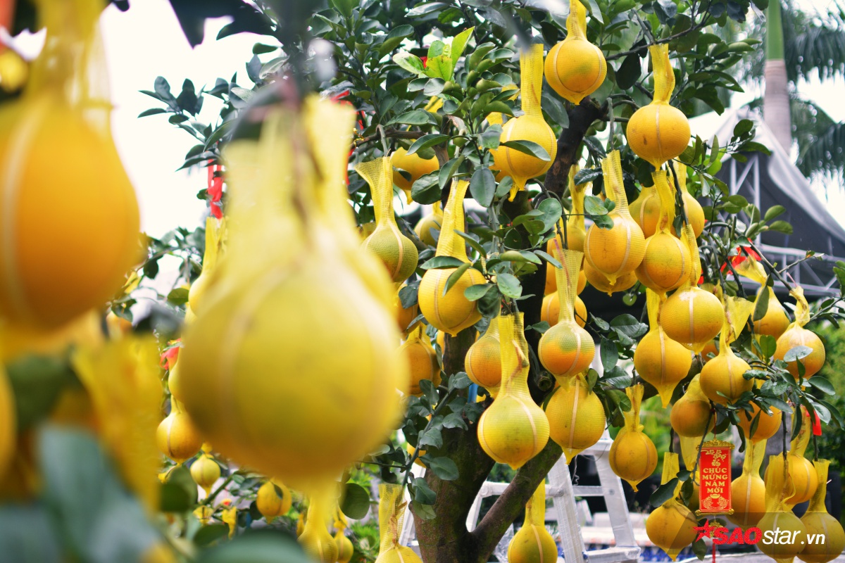 Vào dịp gần Tết Nguyên đán, nhà vườn tại TP.HCM đã nhập thêm loại bưởi đắt đỏ này để phục vụ thú chơi cây cảnh của mọi người. Giống bưởi to, tròn, màu vàng óng đẹp mắt khiến ai nấy đều trầm trồ khen ngợi.