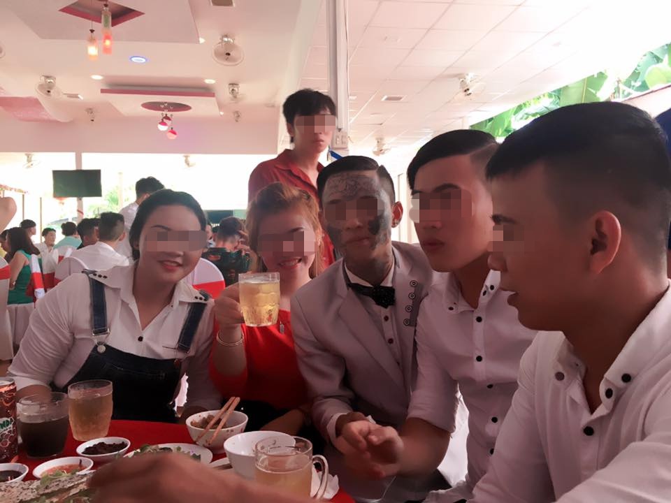 Được biết, chú rể tên H.L, 21 tuổi và cô dâu tên B.N hiện đang sống tại Nha Trang, Khánh Hoà. Theo chia sẻ của chàng trai là chủ nhân của bữa tiệc cưới, những hình xăm trên mặt đã được làm cách đây một năm, ngoài ra, trên người anh vẫn còn rất nhiều hình xăm khác.