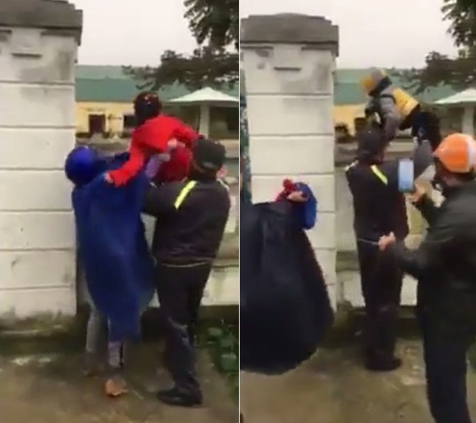 Ngày 9/1, trên trang mạng xã hội Facebook đã xuất hiện một đoạn clip dài hơn một phút ghi lại cảnh một số phụ huynh phải trèo tường, bế trẻ chuyền tay nhau qua tường rào để đưa các cháu vào lớp học.